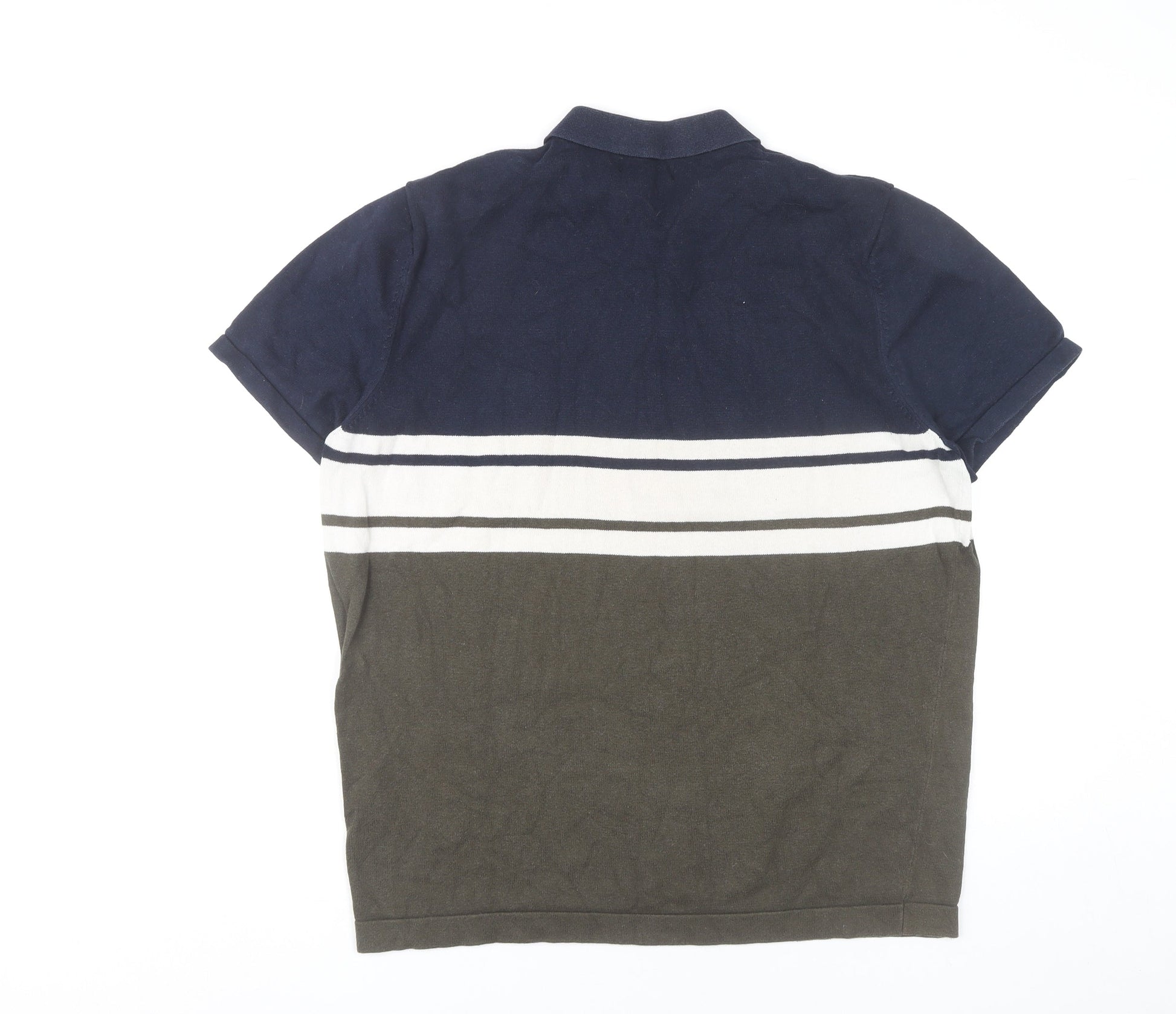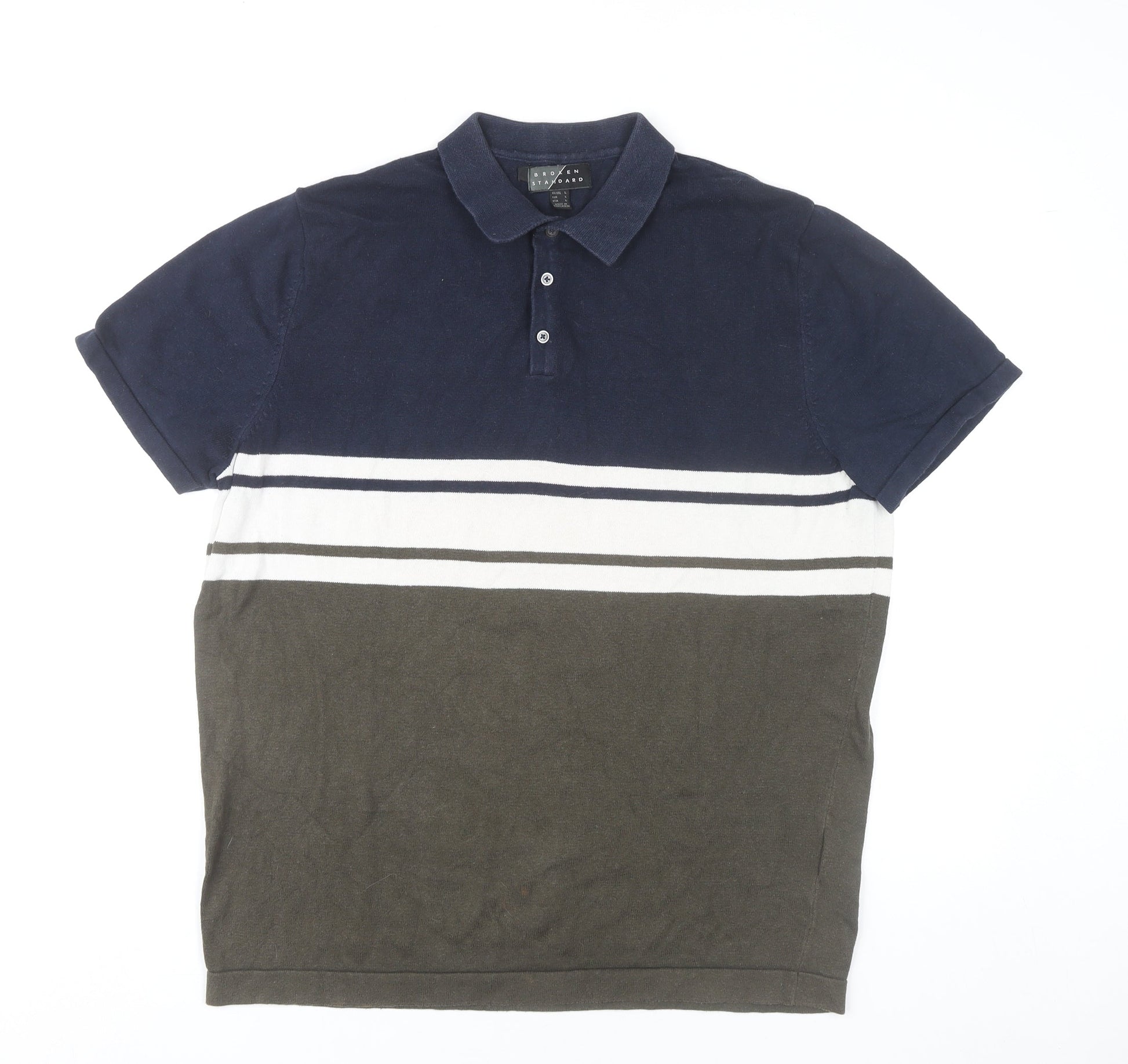 Broken Standard Men’s Brown Blue Striped Cotton Polo Shirt L