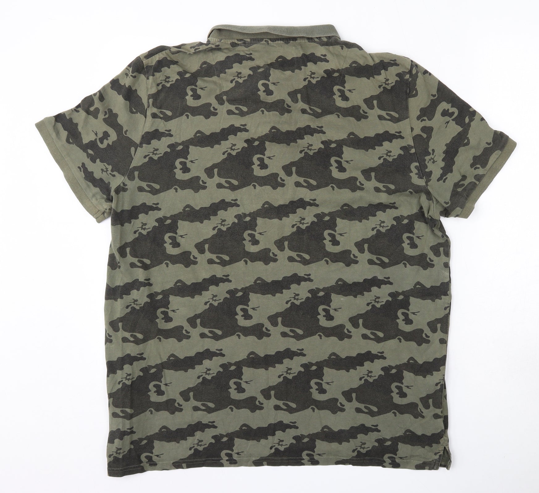 Broken Standard Mens Green Camouflage Polyester Polo Size 2XL Collared Button