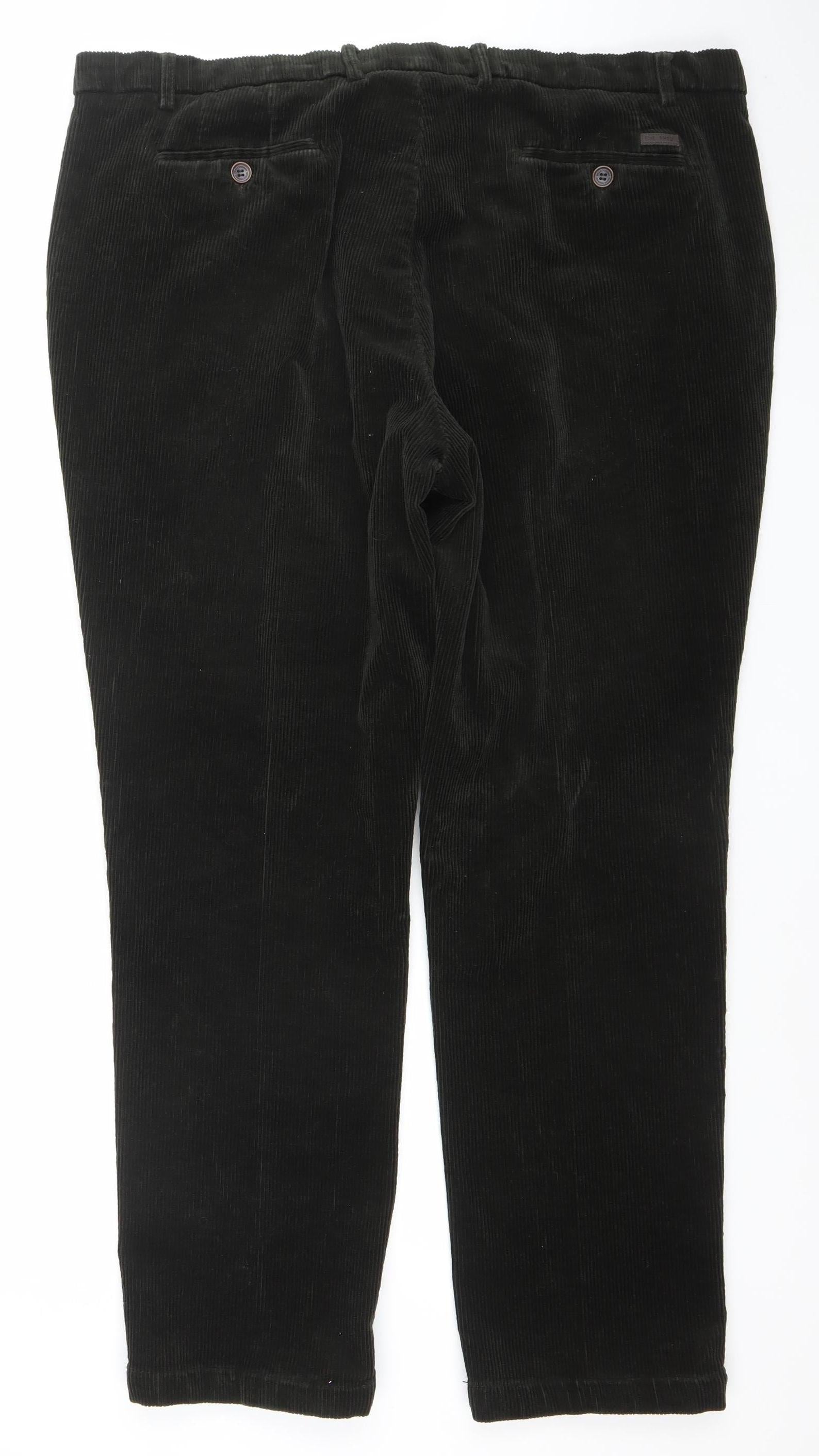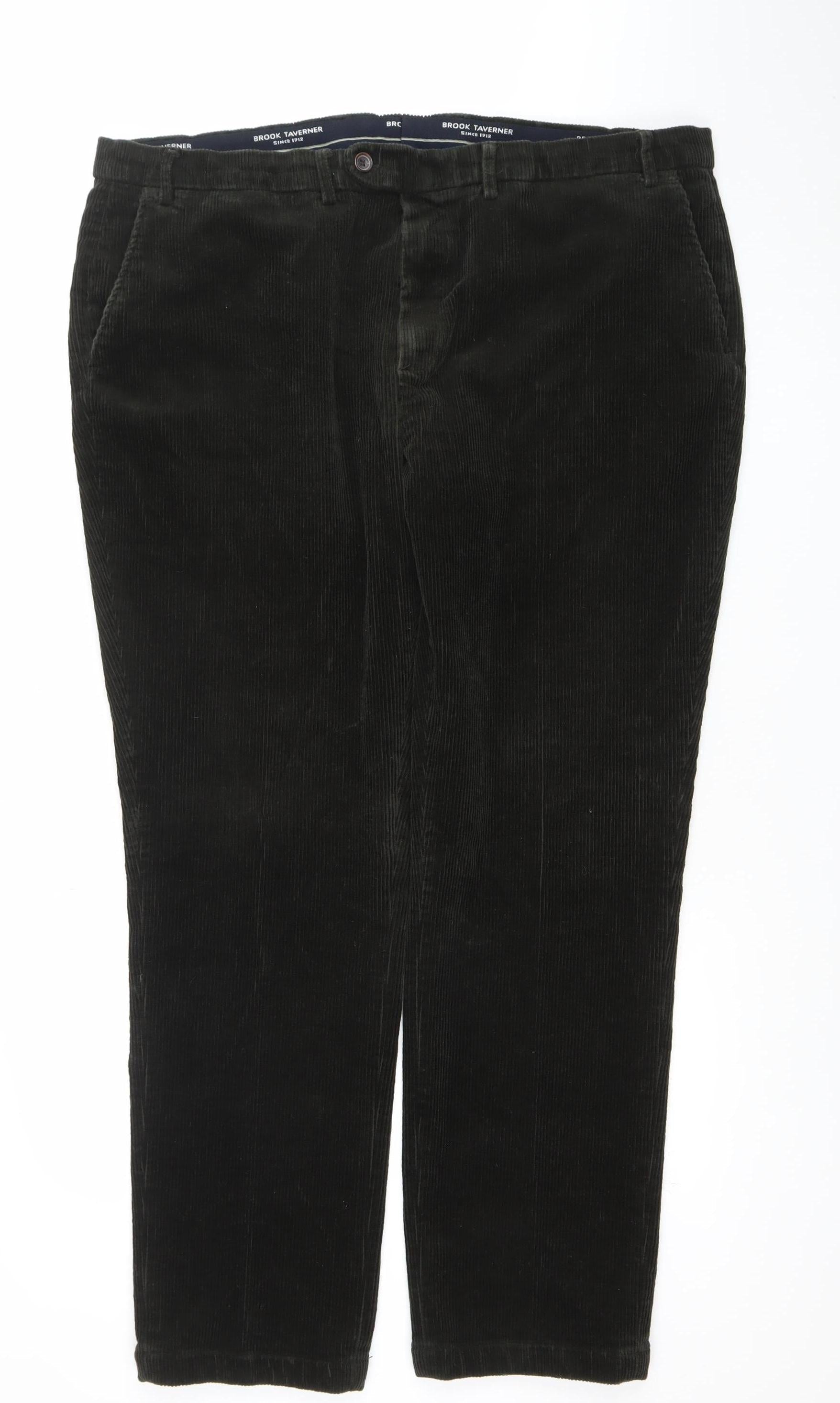 Brook Taverner Men's Black Corduroy Regular Fit Trousers Size 46L