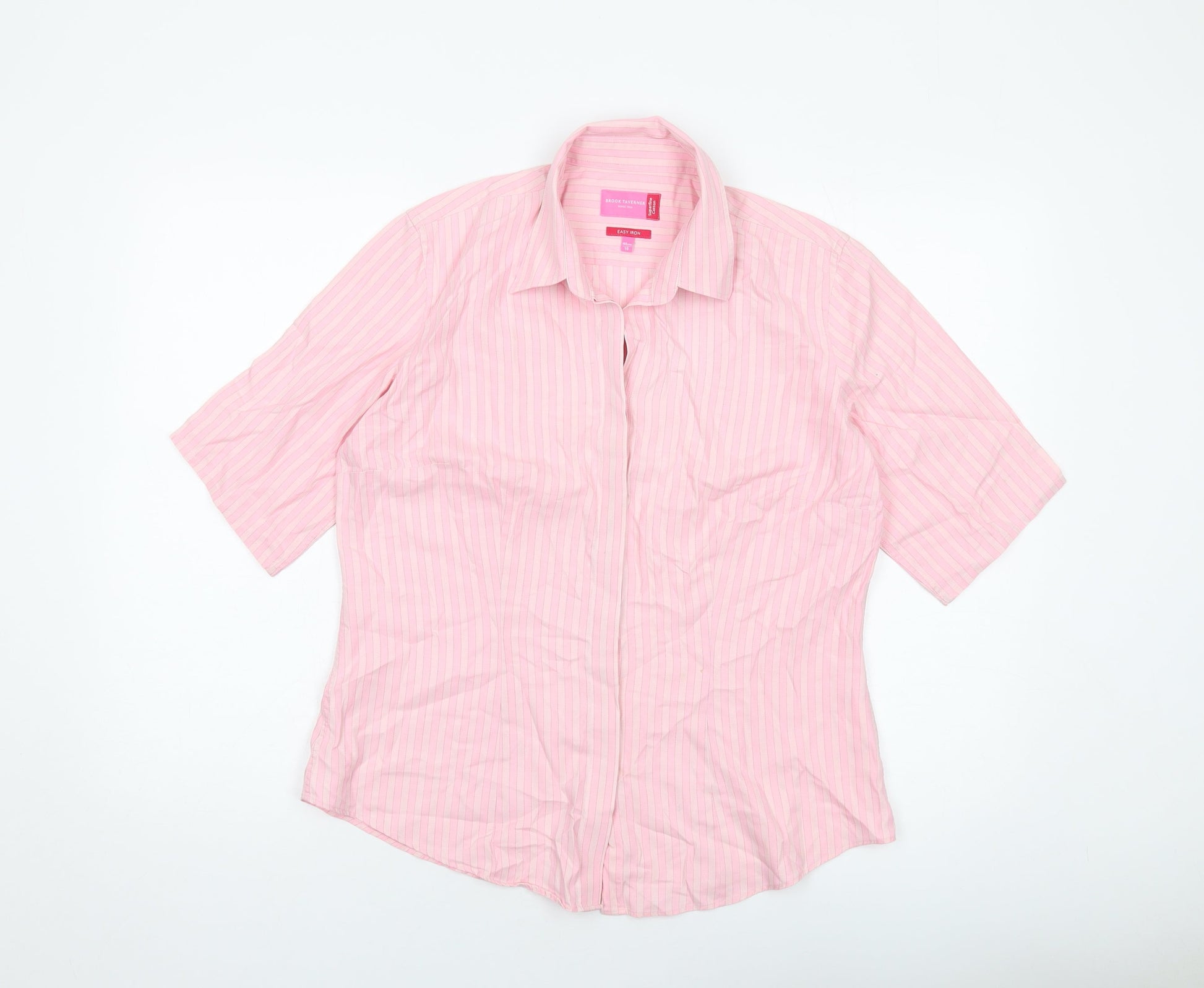 Brook Taverner Womens Pink Striped Polyester Basic Button-Up Size 16 Collared