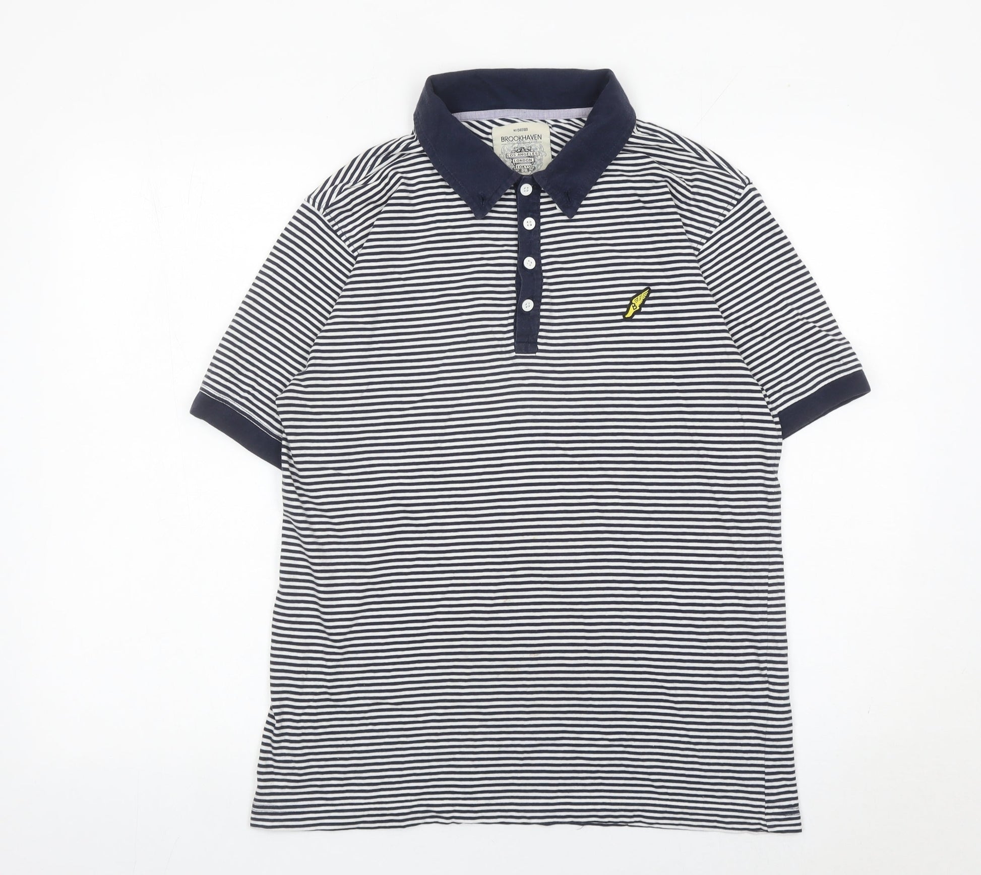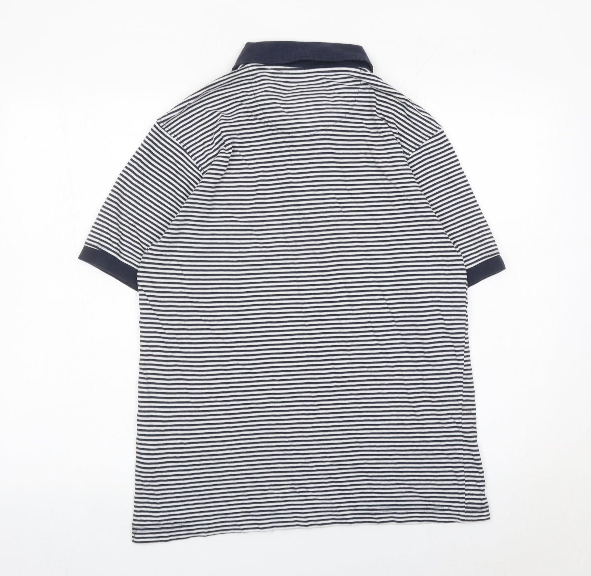 Brookhaven Men’s Blue Striped Cotton Polo Shirt Medium
