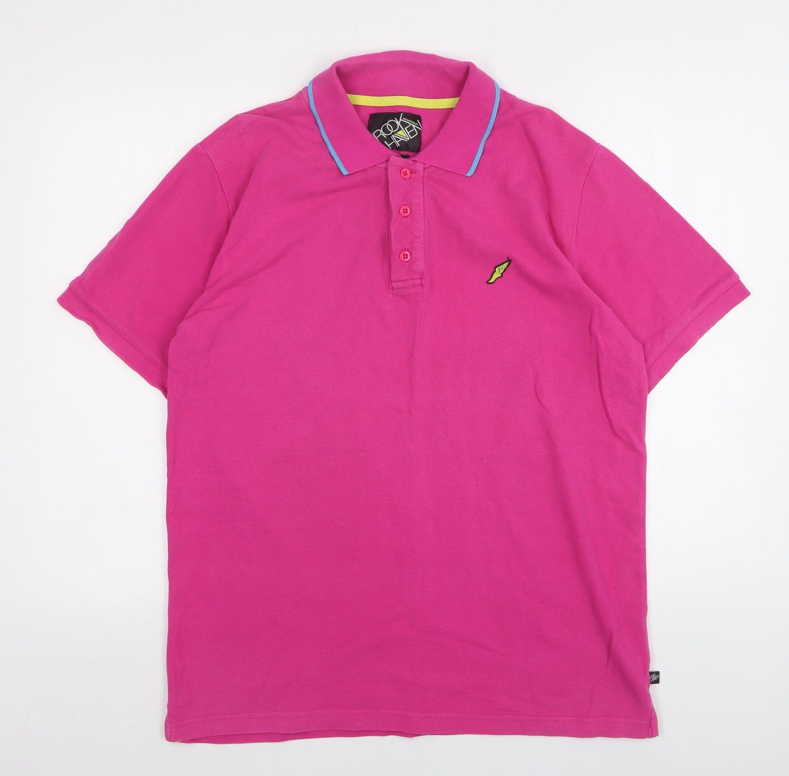 Brookhaven Mens Pink Cotton Polo Size L Collared