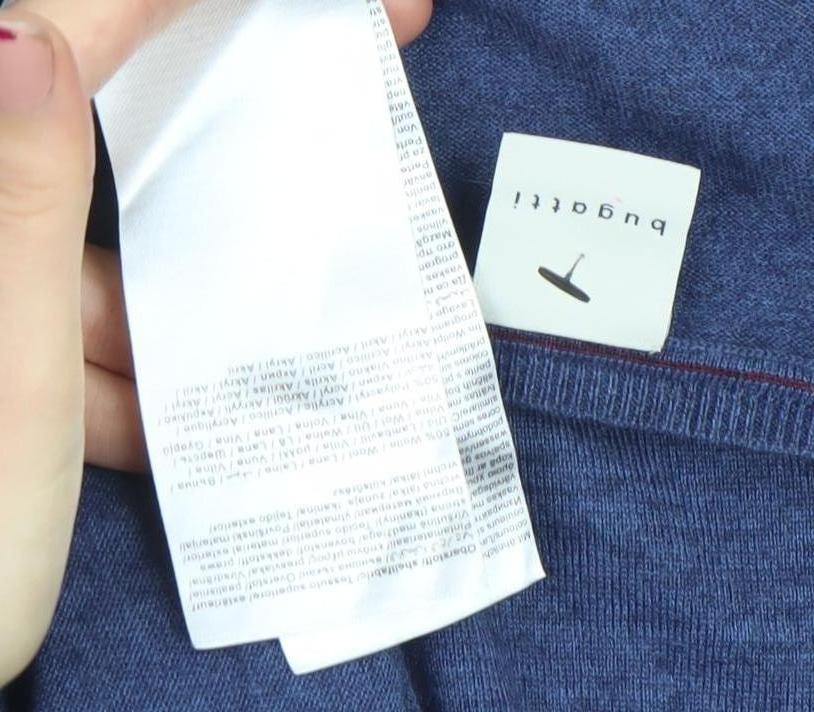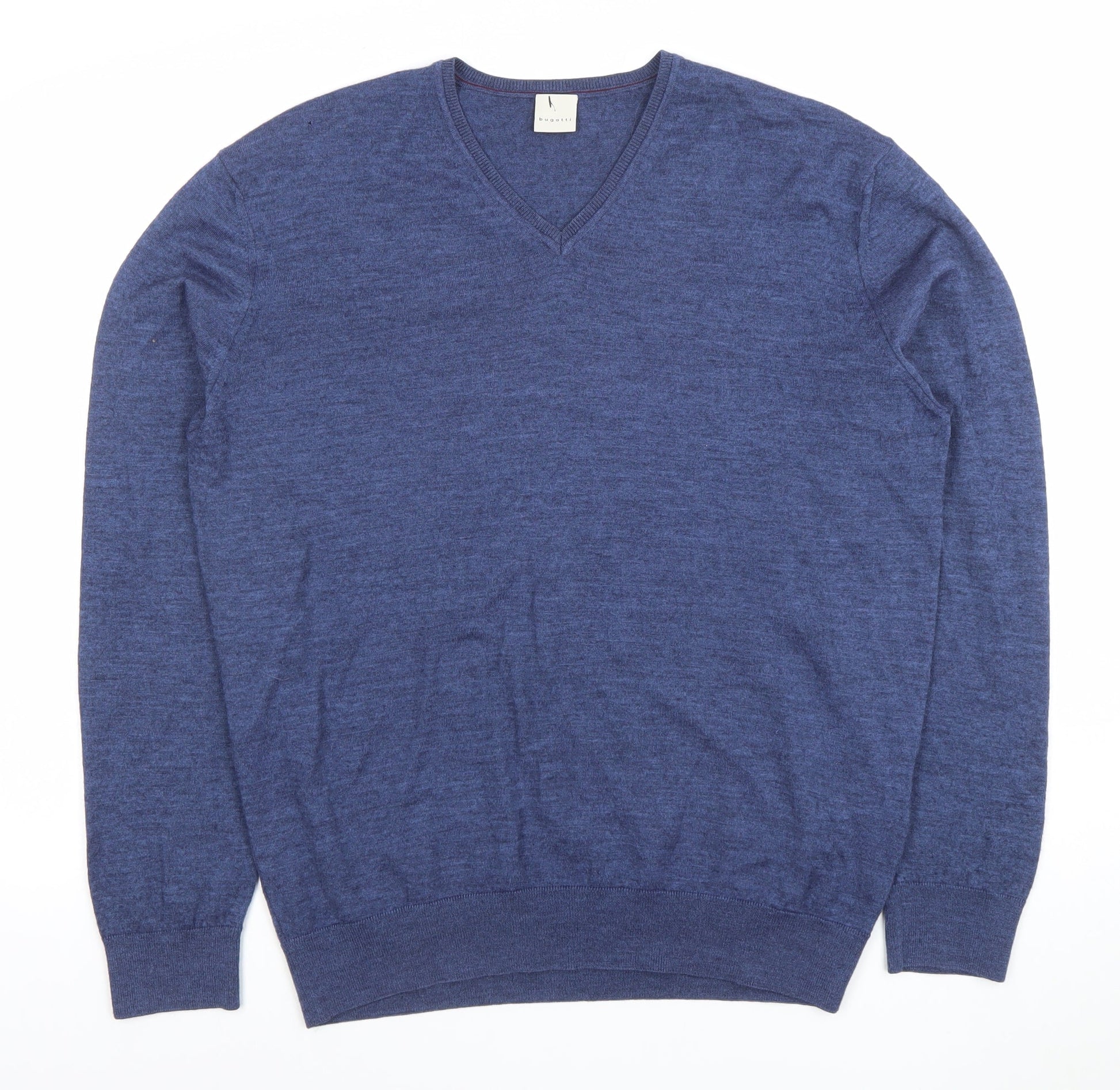 Bugatti Men Blue 7XL Wool V-Neck Pullover Jumper