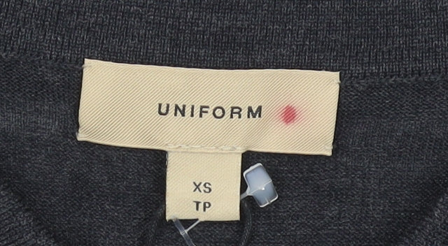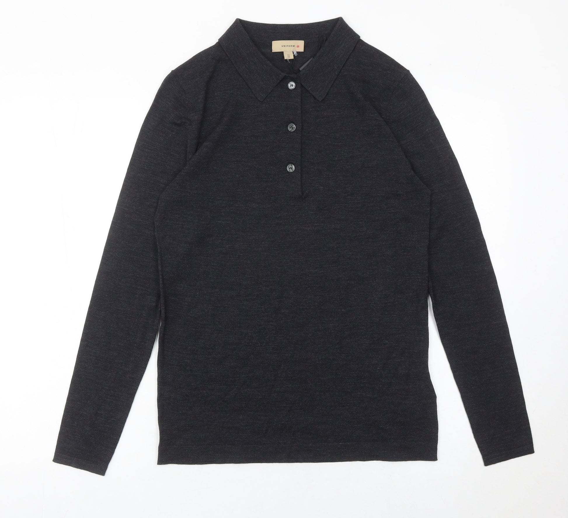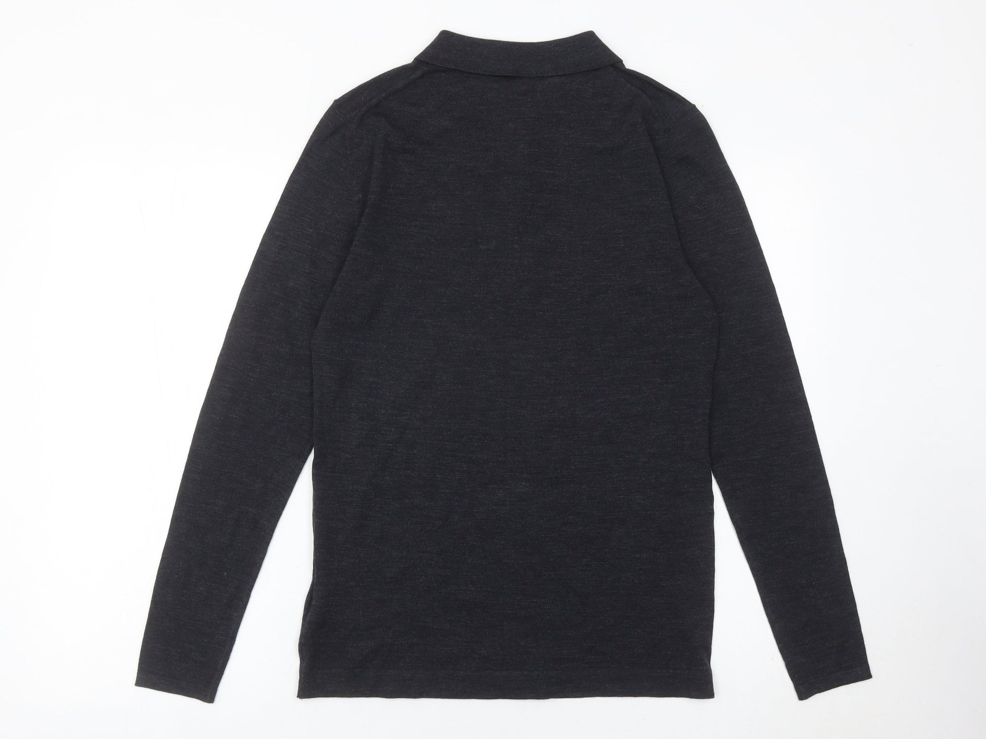 Burberry Men's Black Merino Wool Long Sleeve Polo Shirt XS Slim Fit