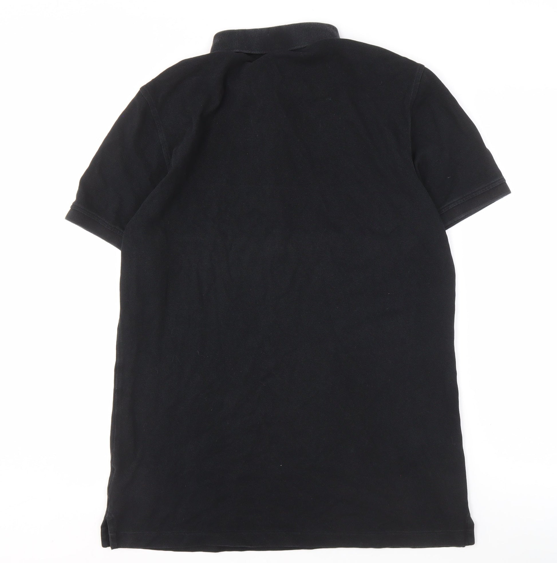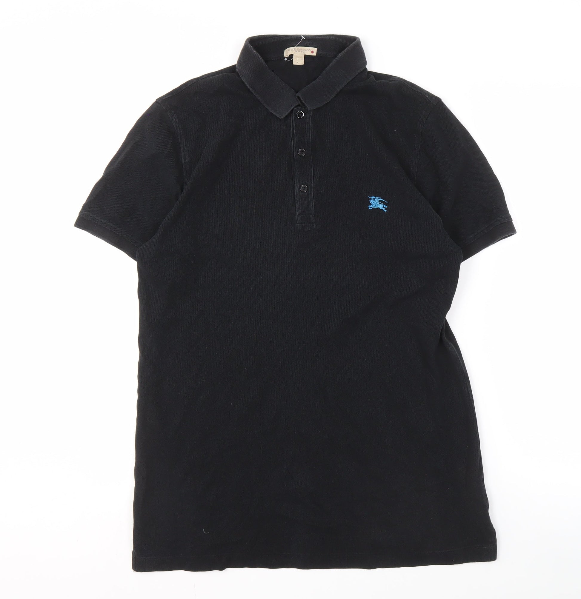 Burberry Men's Black Polo, Size L, Cotton Logo Accent