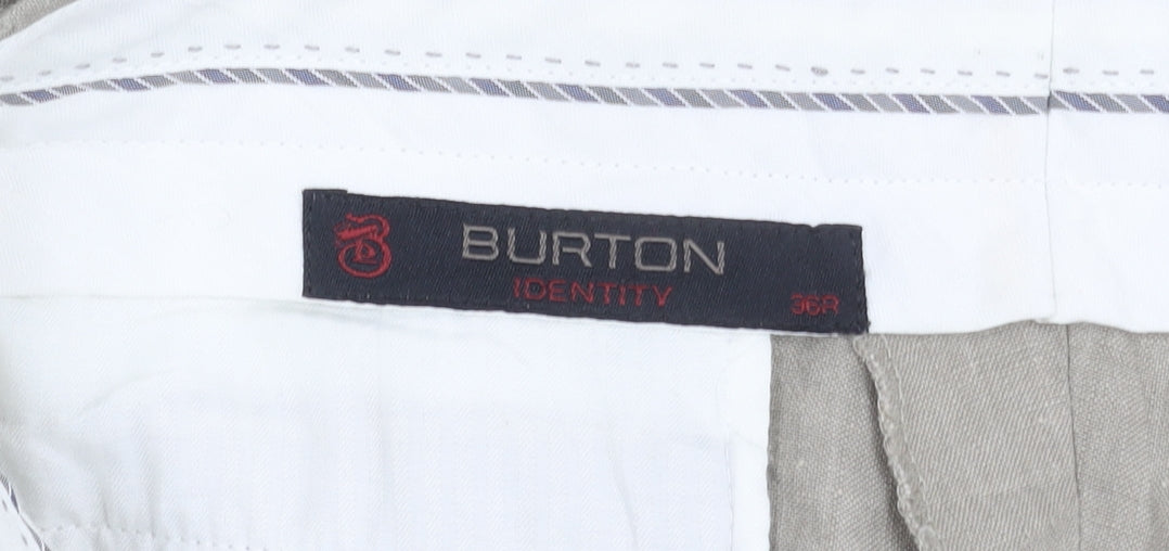 Burton Men’s Beige Linen Chino Trousers Size 36R Regular Fit