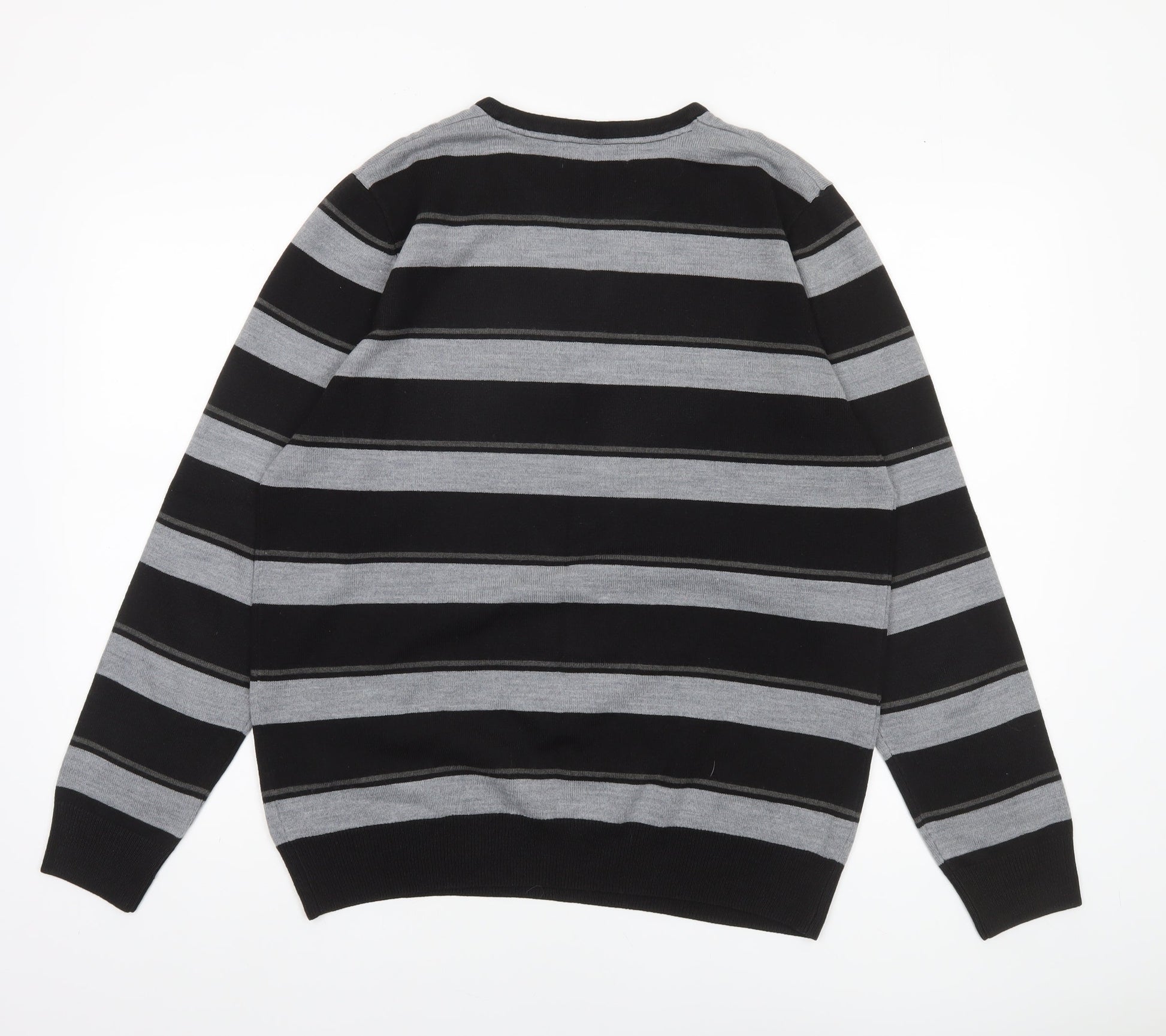 Burton Men’s Black Grey Striped Henley Jumper Size L Acrylic Knit