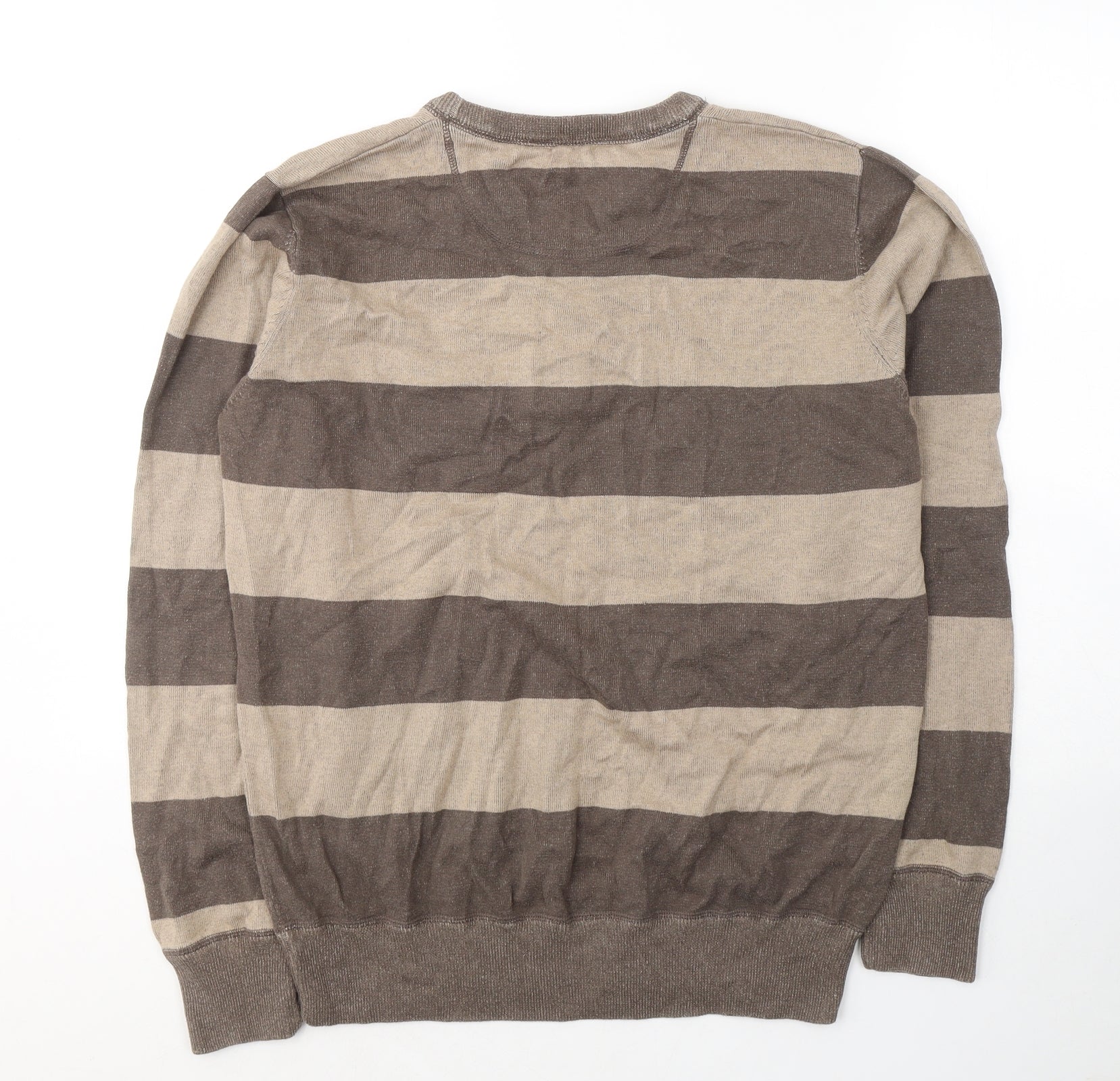 Burton Mens Beige V-Neck Cotton Pullover Jumper Size L