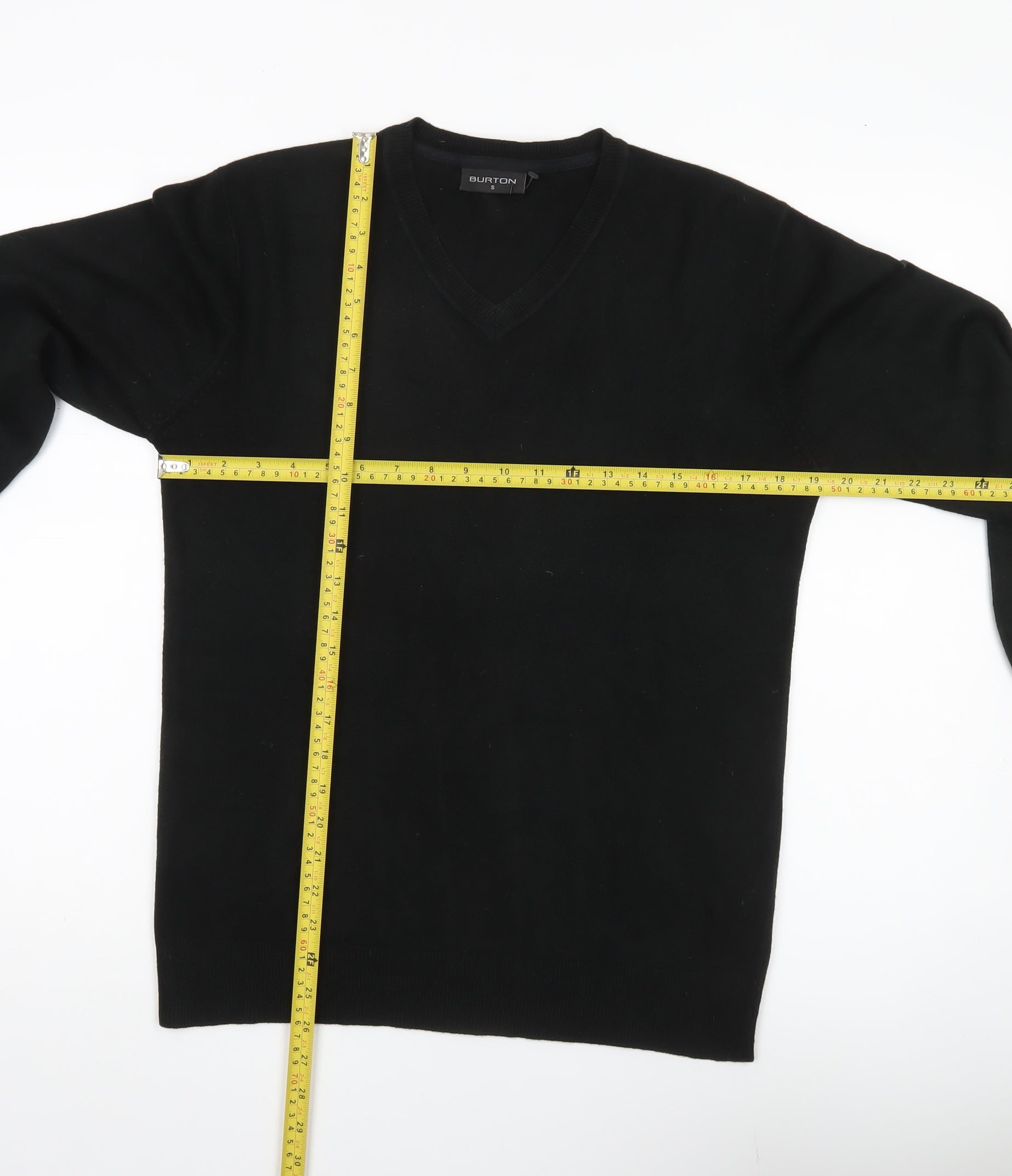 Burton Men's Black V-Neck Acrylic Pullover Jumper Size S