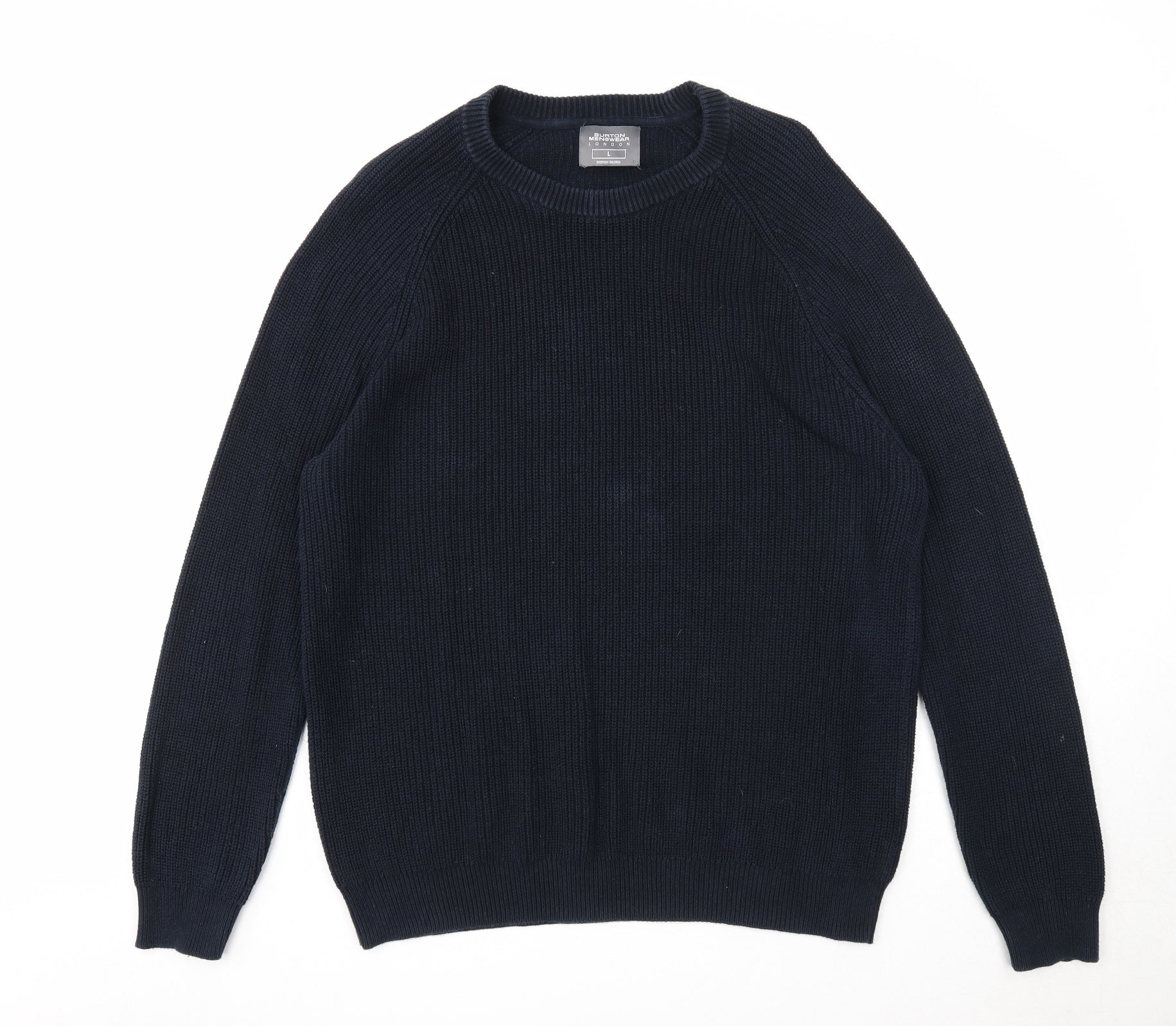 Burton Mens Blue Round Neck Cotton Pullover Jumper Size L Long Sleeve