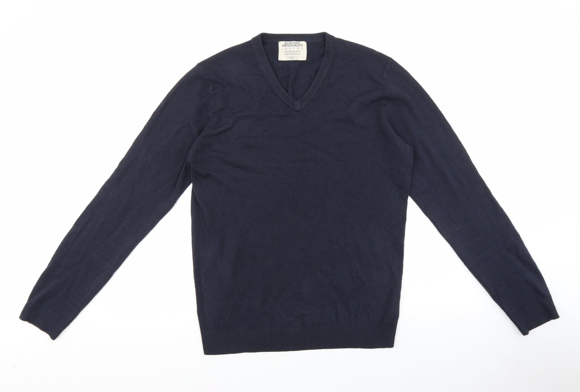 Burton Mens Blue V-Neck Acrylic Pullover Jumper Size S