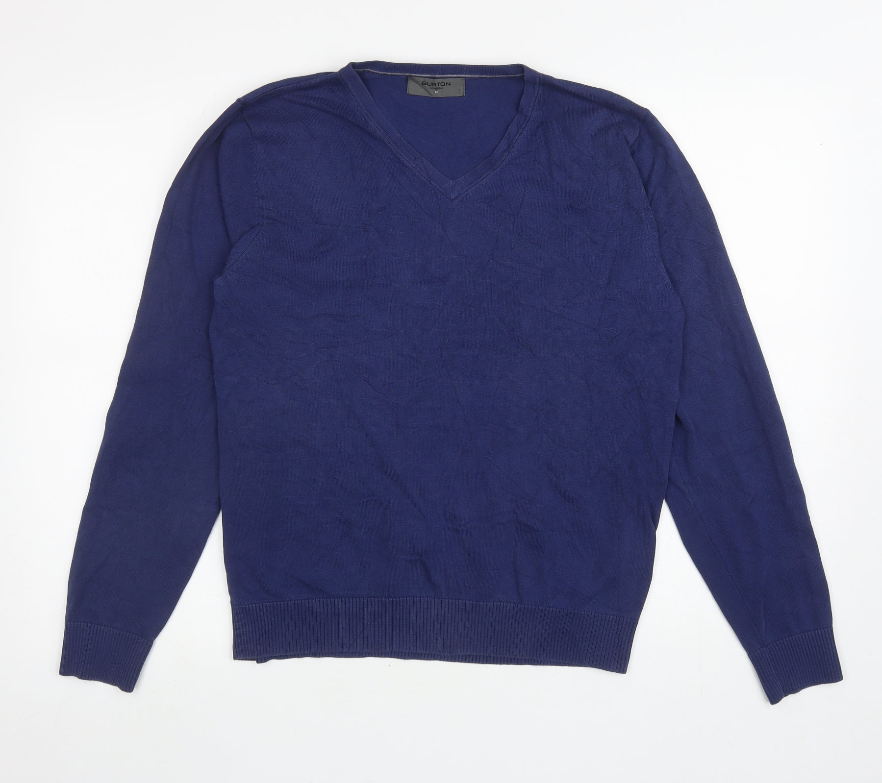 Burton Mens Blue V-Neck Cotton Pullover Jumper Size L