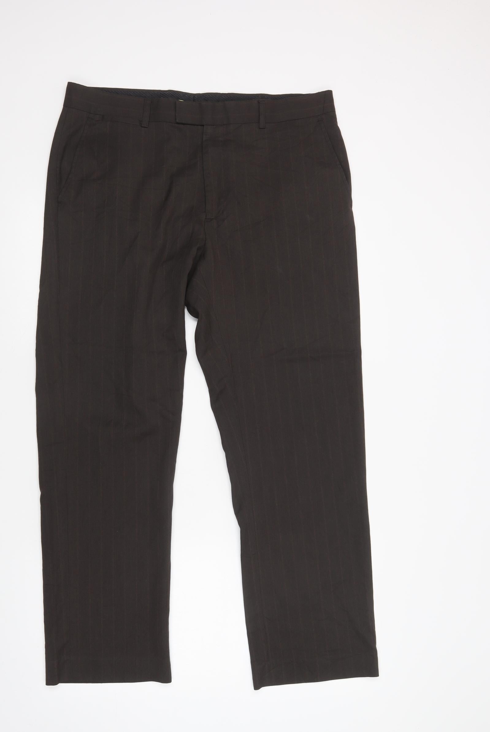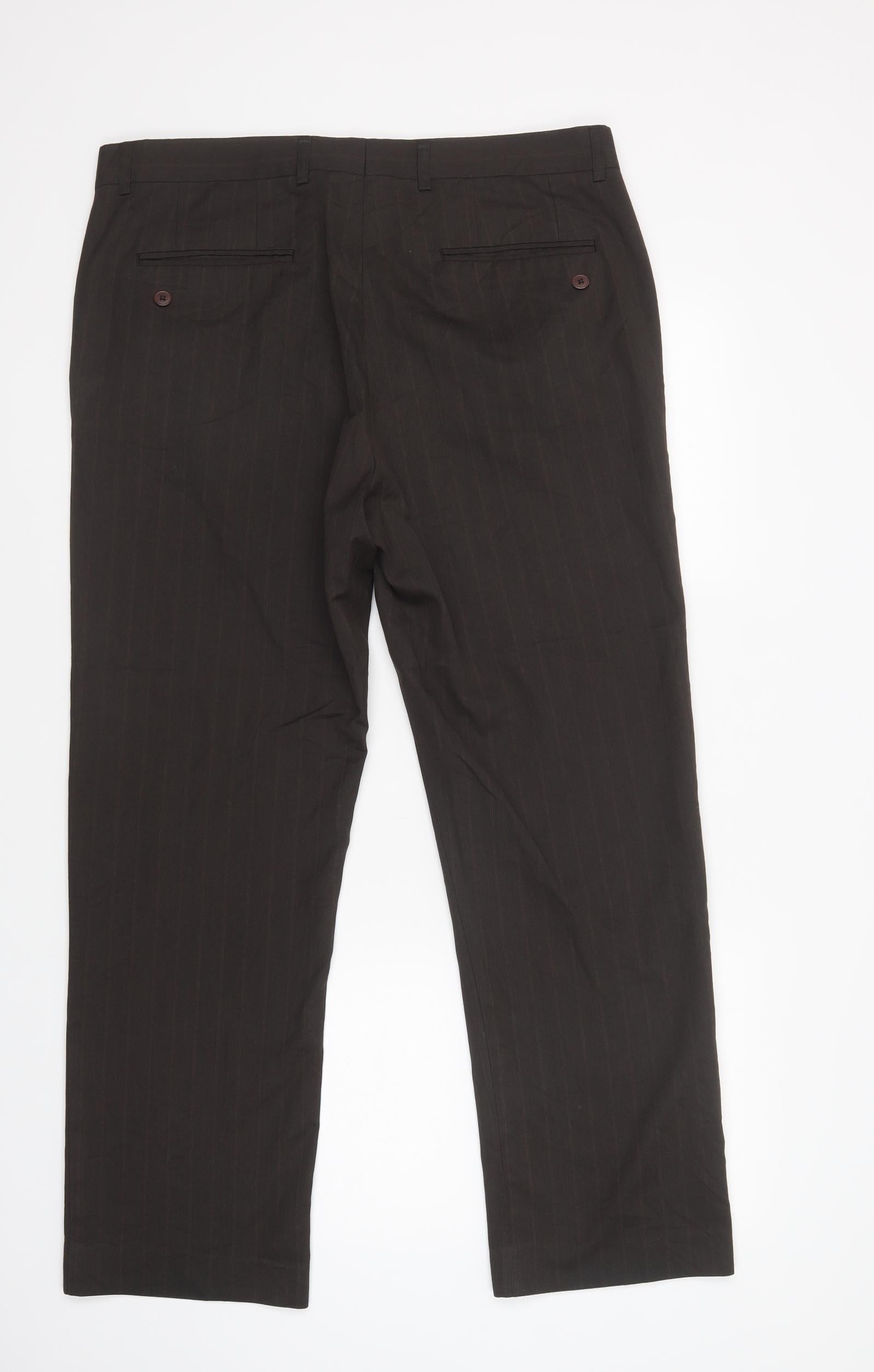 Burton Mens Brown Striped Polyester Dress Pants Trousers Size 38 in L31 in Regular Button