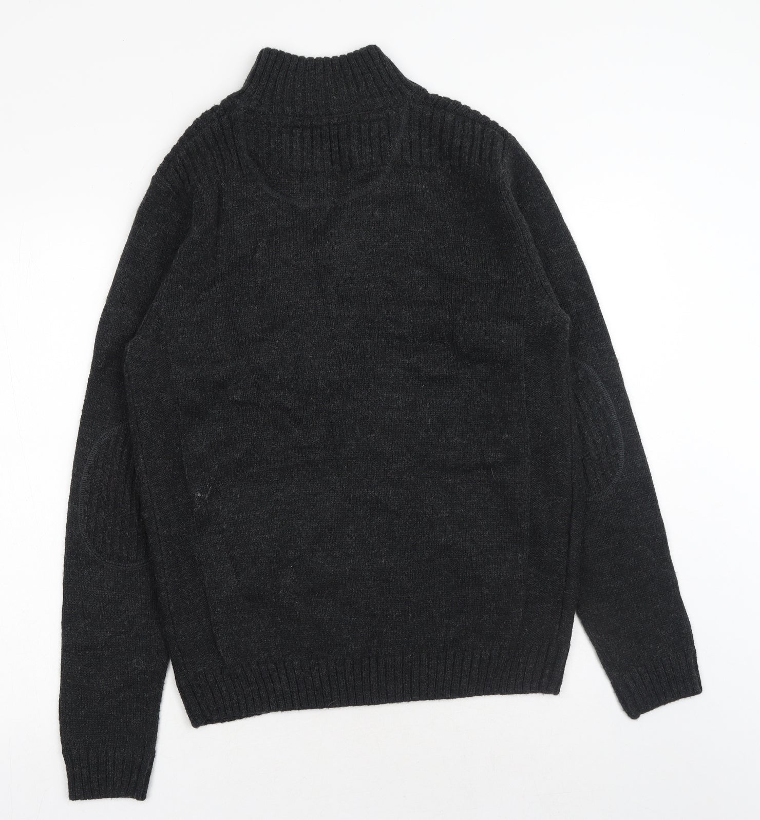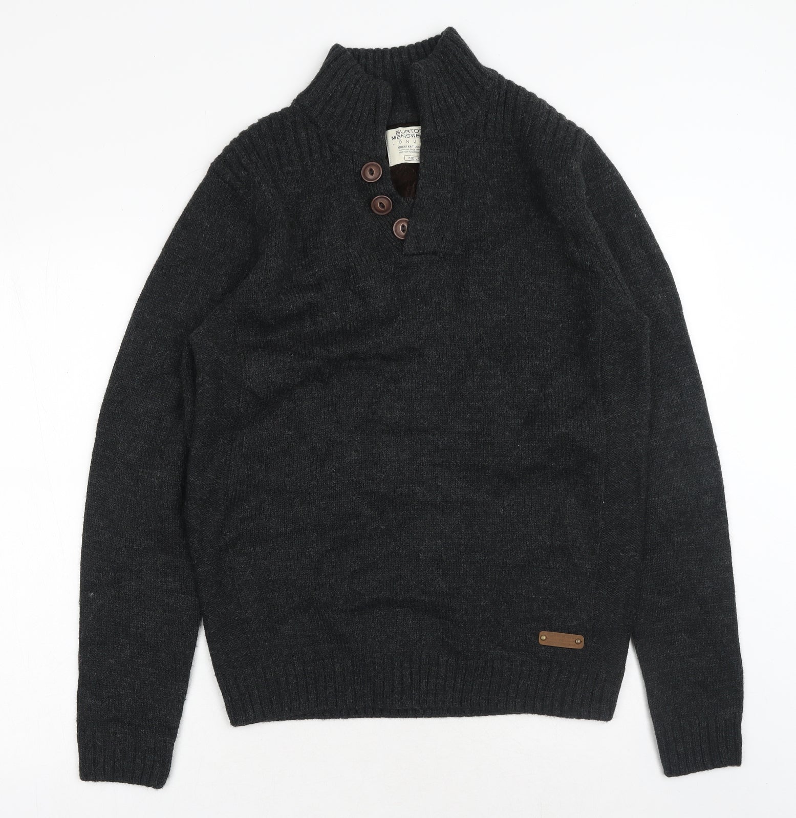 Burton Mens Grey V-Neck Acrylic Henley Jumper Size M Long Sleeve