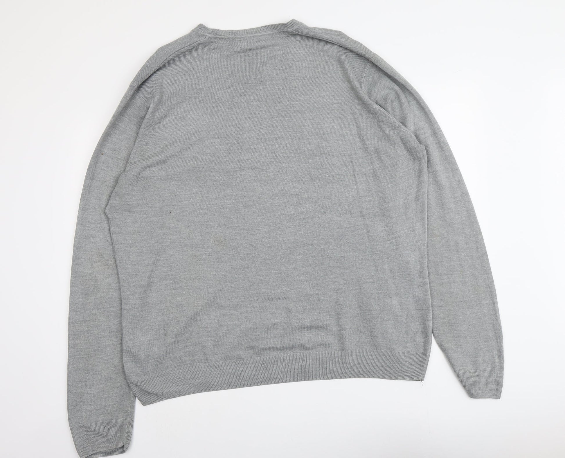Burton Mens Grey V-Neck Acrylic Pullover Jumper Size 2XL Long Sleeve