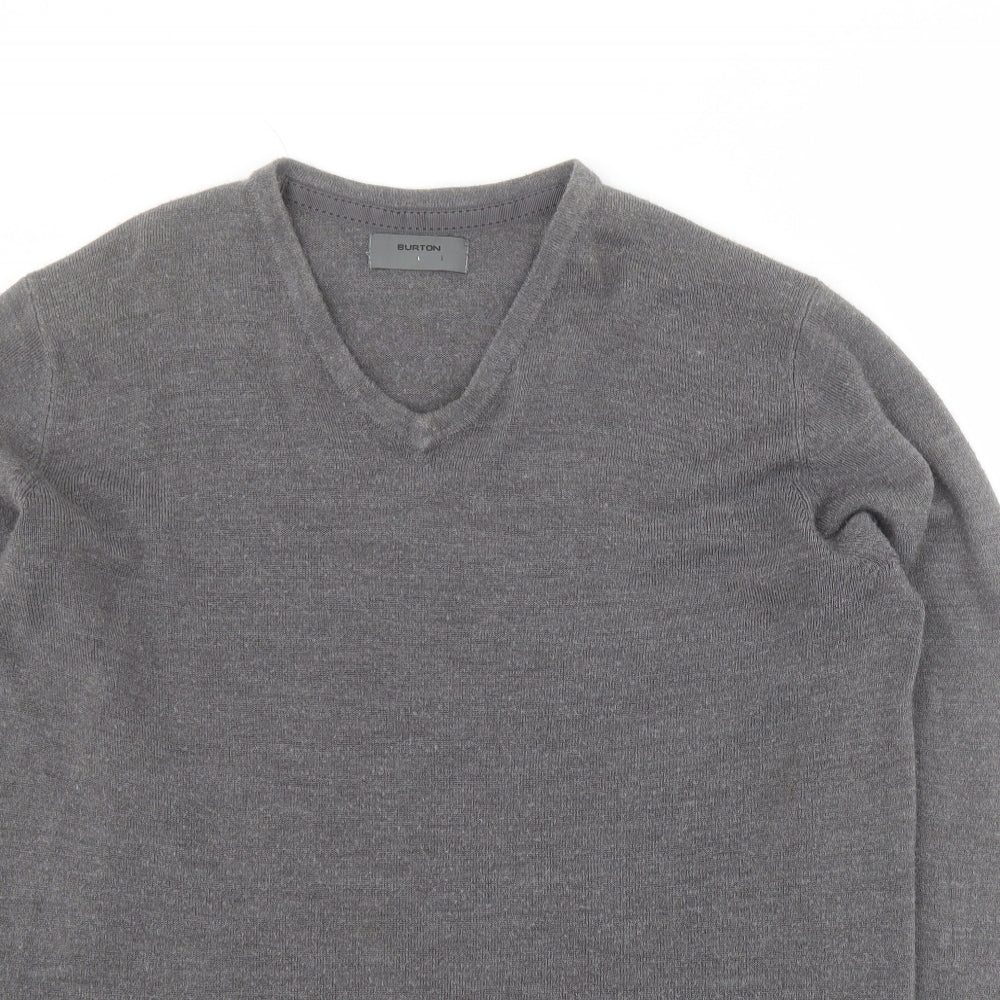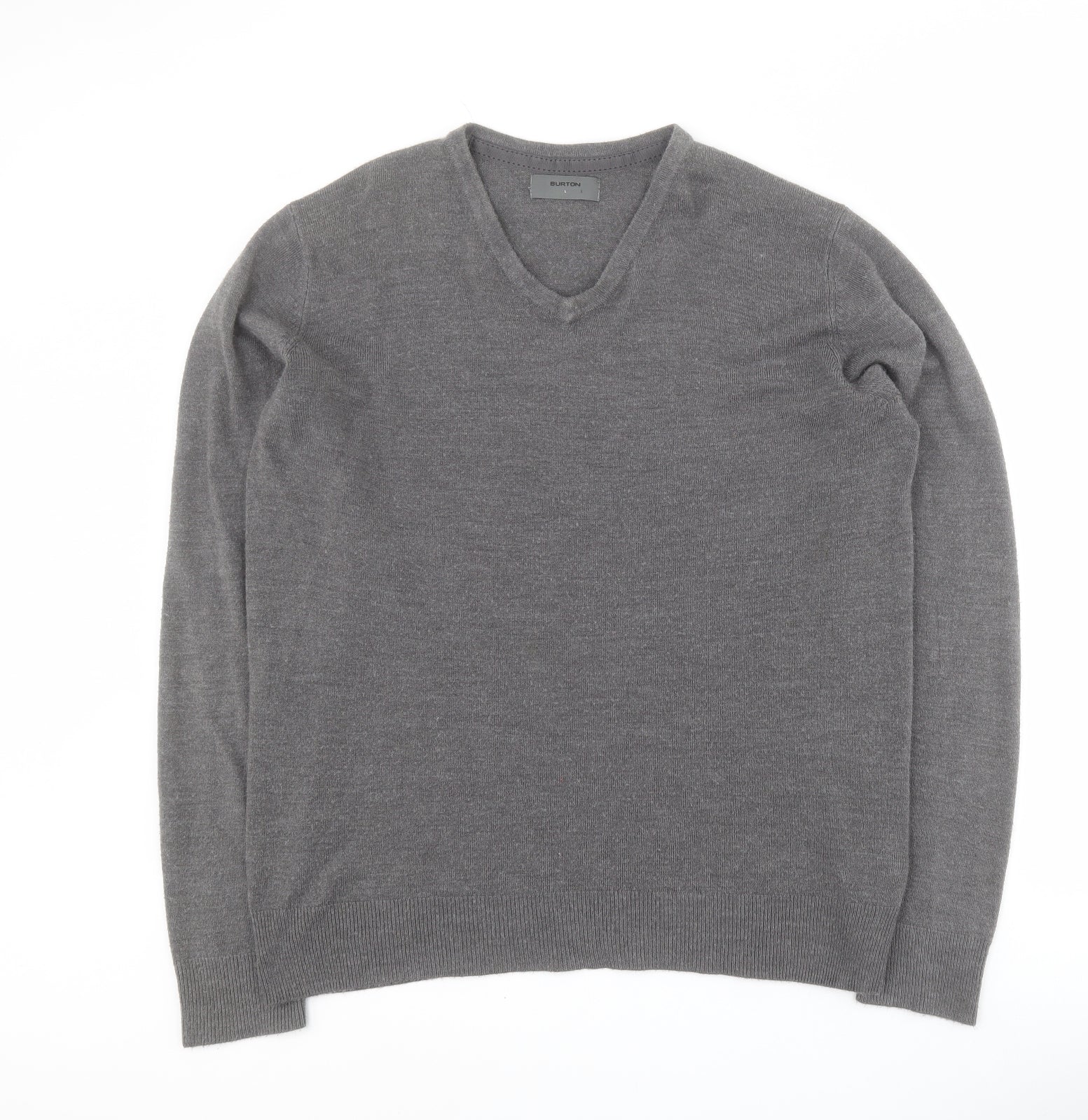 Burton Mens Grey V-Neck Acrylic Pullover Jumper Size L