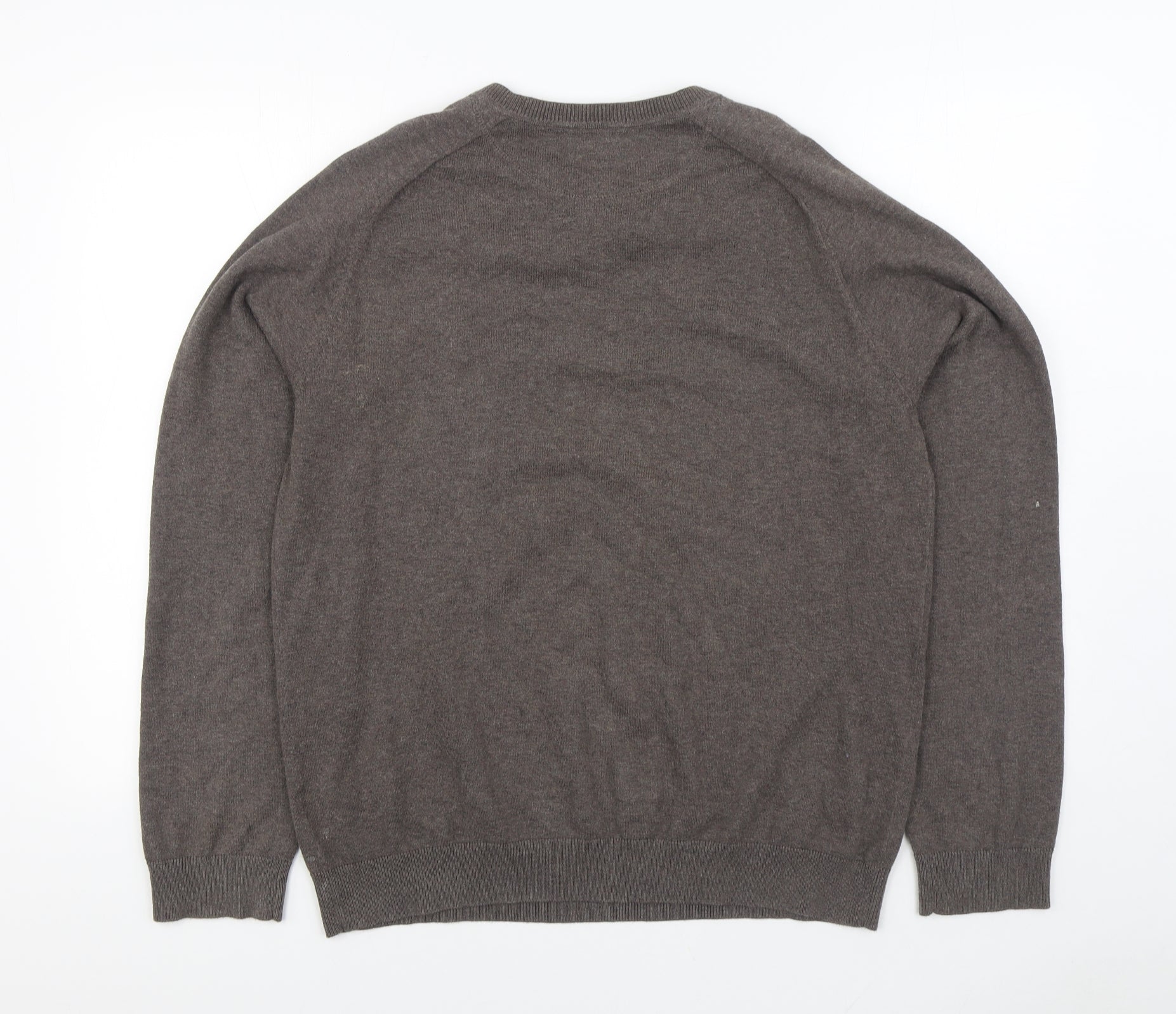 Burton Mens Grey V-Neck Cotton Pullover Jumper Size L