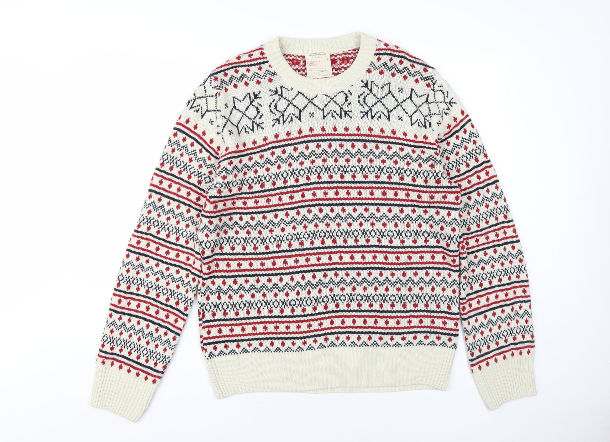 Burton Men's Ivory Fair Isle Crew Neck Jumper - Size L