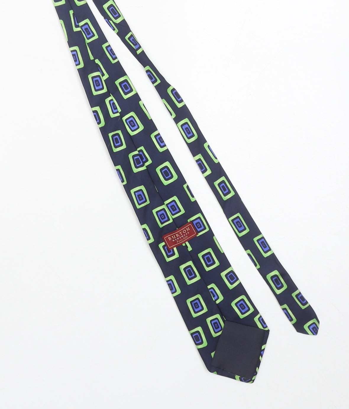 Burton Mens Navy Blue Green Geometric Pure Silk Tie One Size