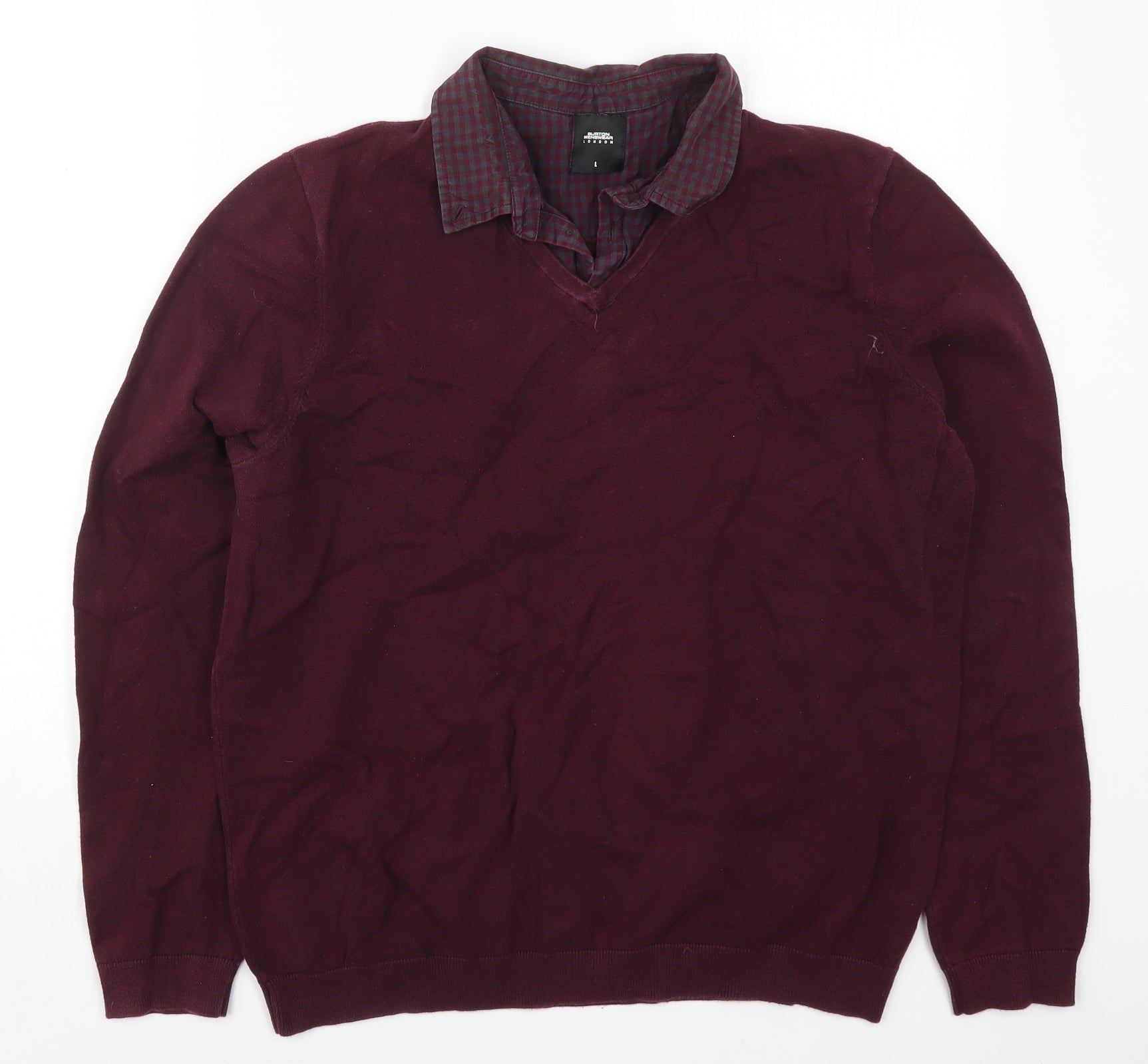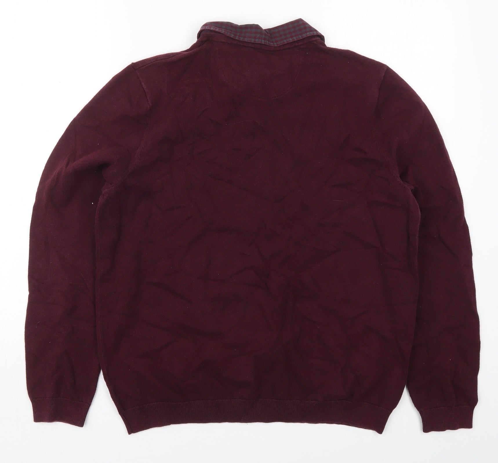 Burton Mens Purple Collared Cotton Pullover Jumper Size L