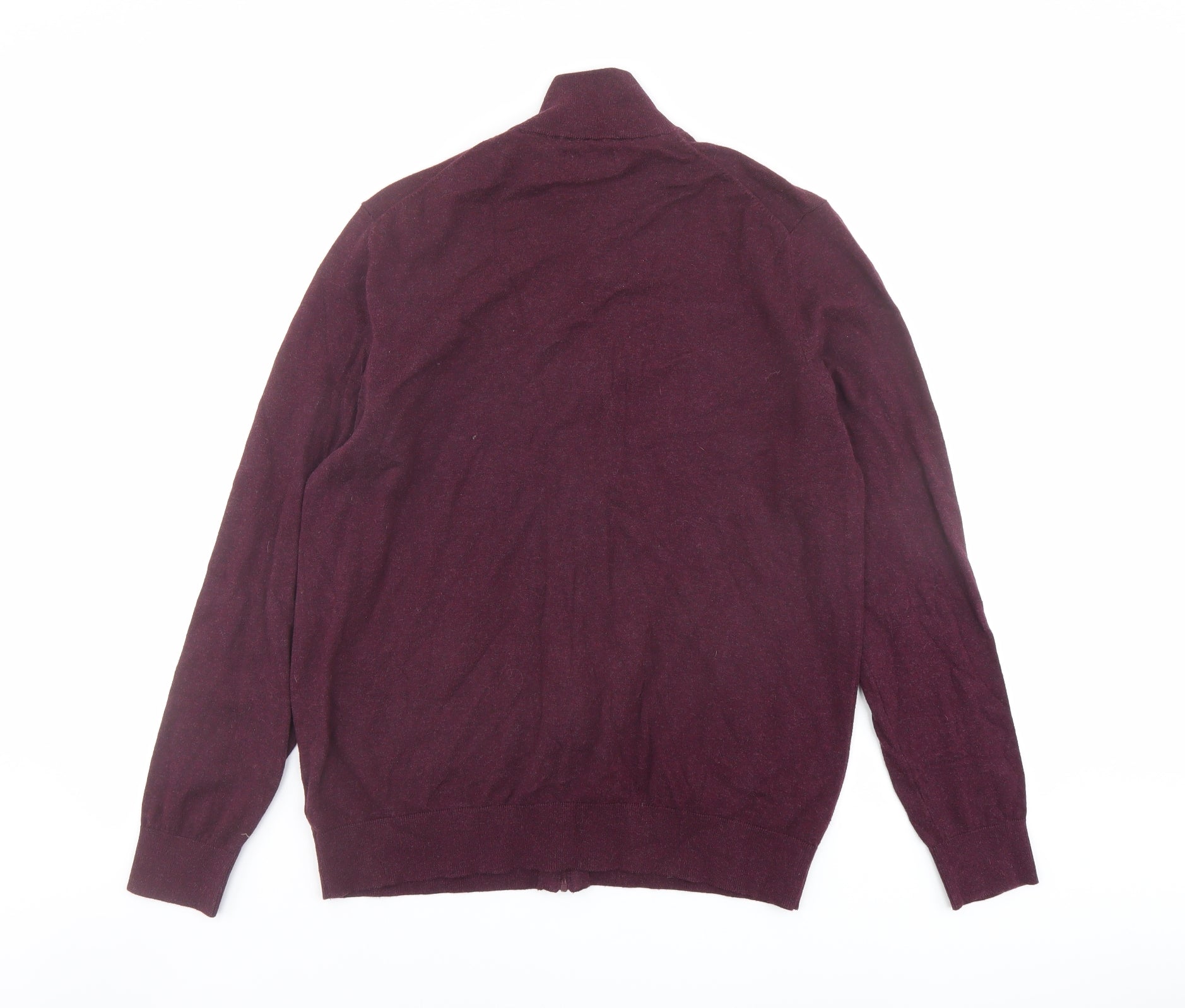 Burton Mens Purple Mock Neck Cotton Full Zip Jumper Size L Long Sleeve