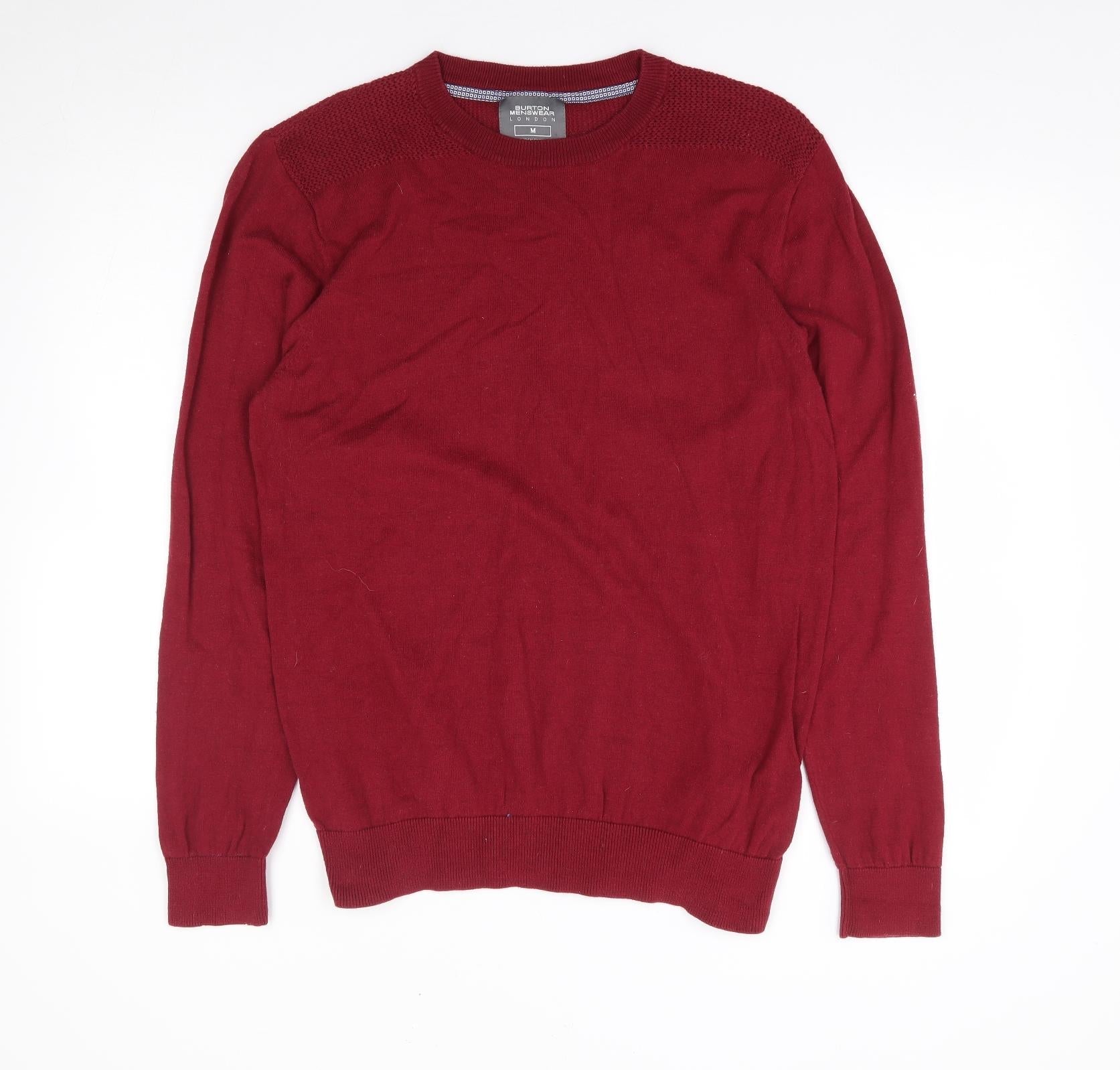 Burton Mens Red Crew Neck Cotton Pullover Jumper Size M