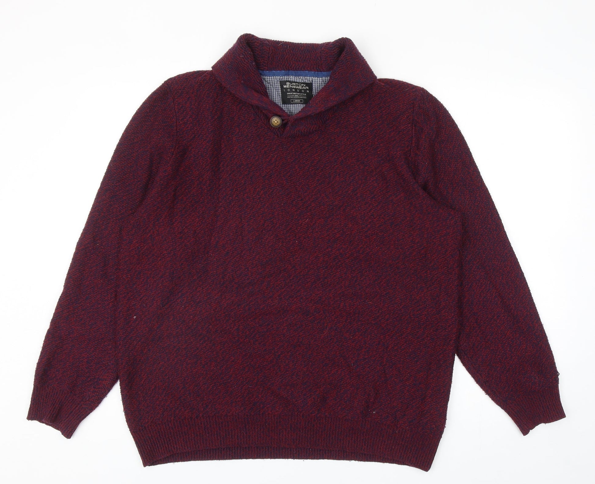 Burton Mens Red V-Neck Acrylic Pullover Jumper Size L