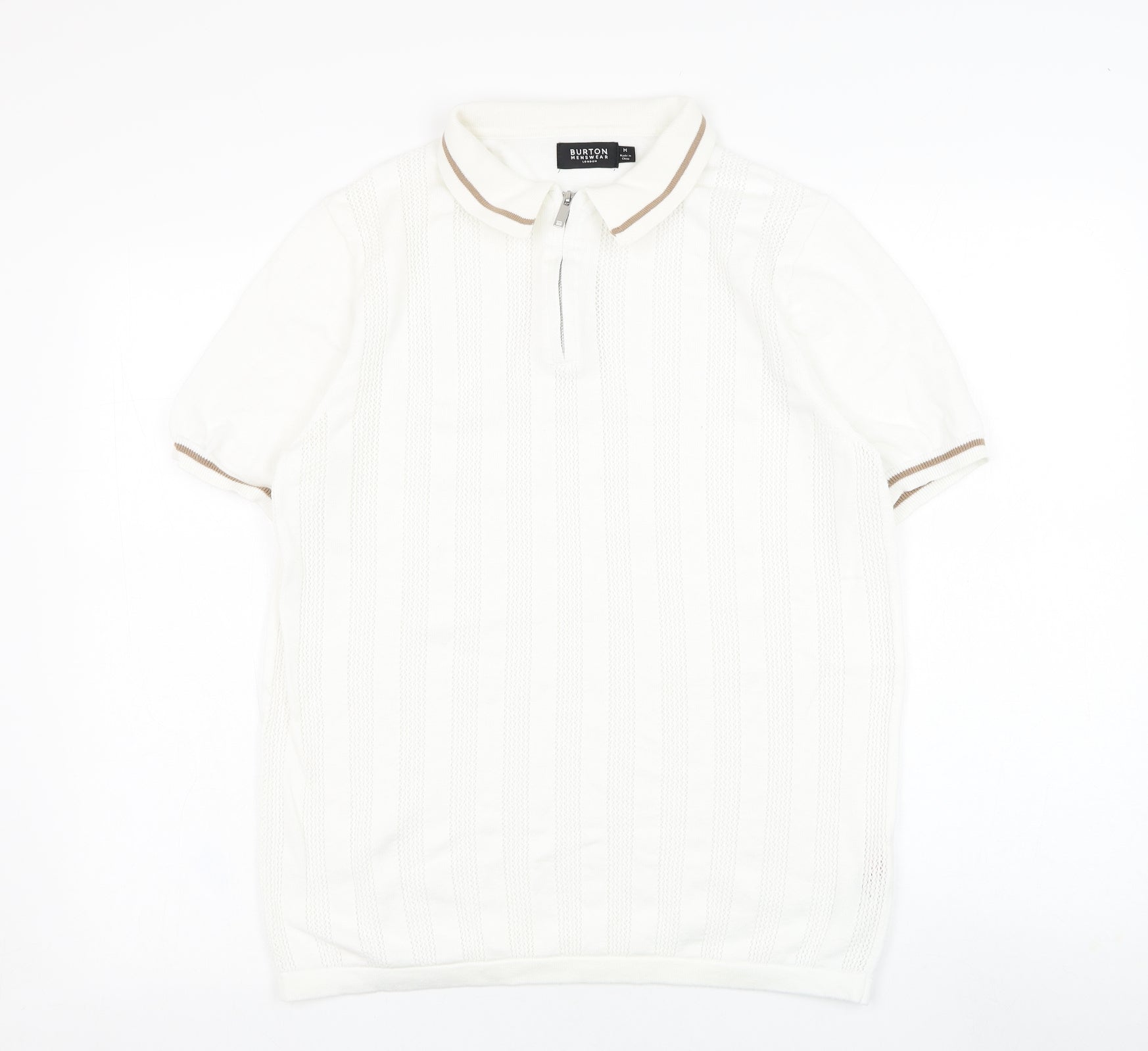 Burton Mens White Collared Cotton Pullover Jumper Size M