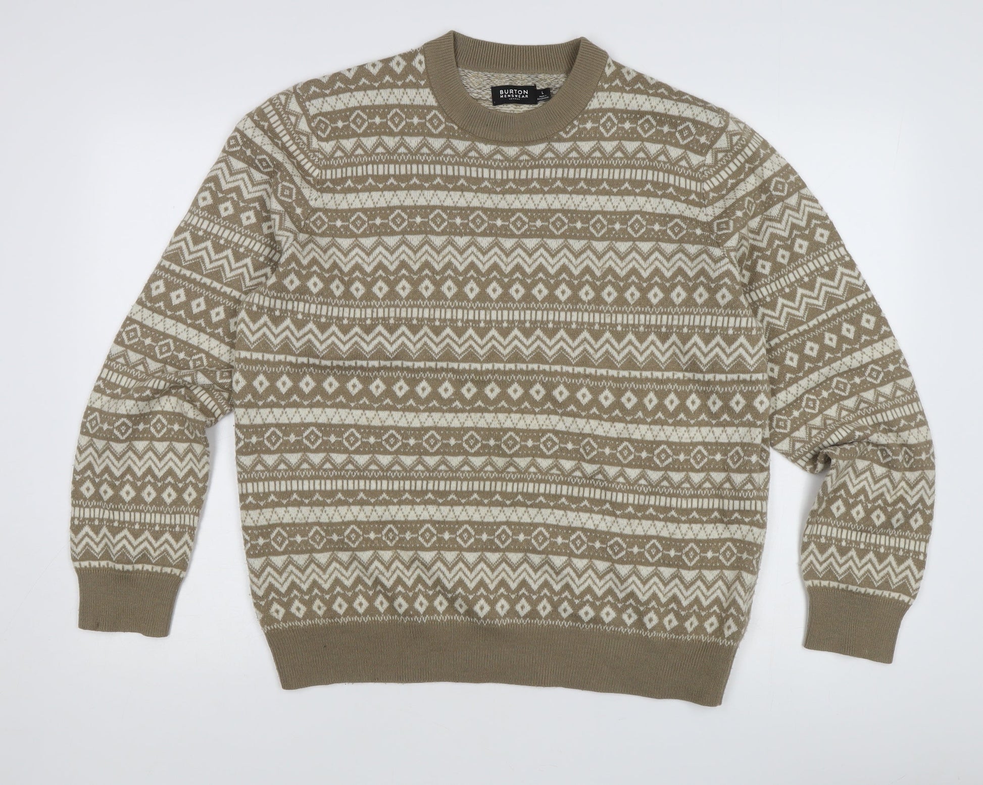 Burton Menswear Beige Fair Isle Jumper for Men - Size L