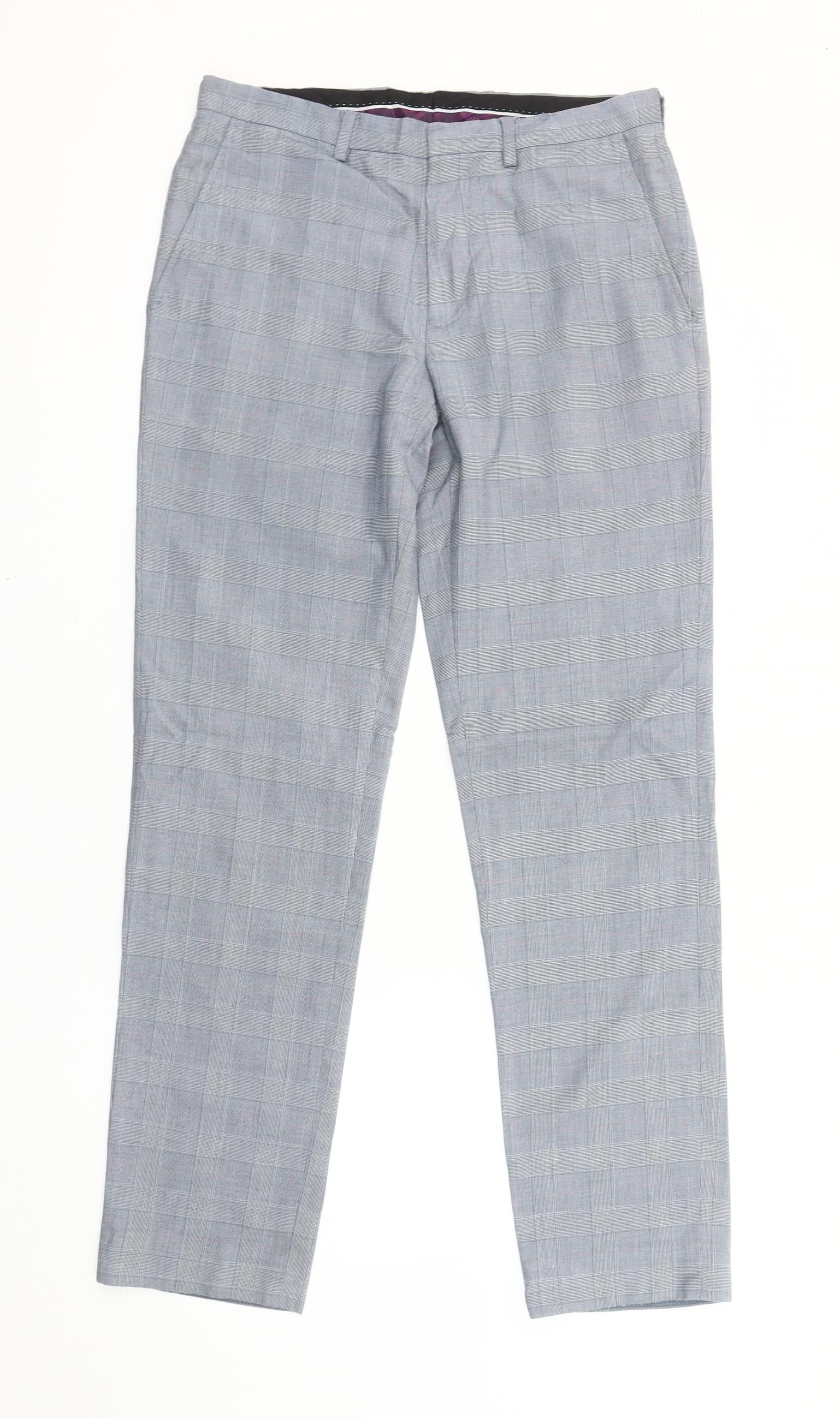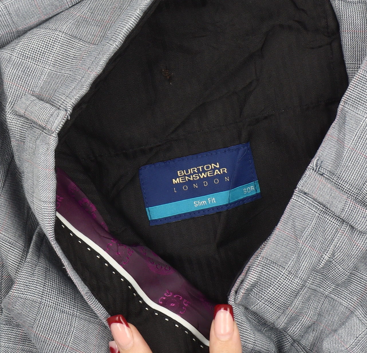 Burton Menswear Grey Check Slim Fit Dress Pants 30R Men's Trousers