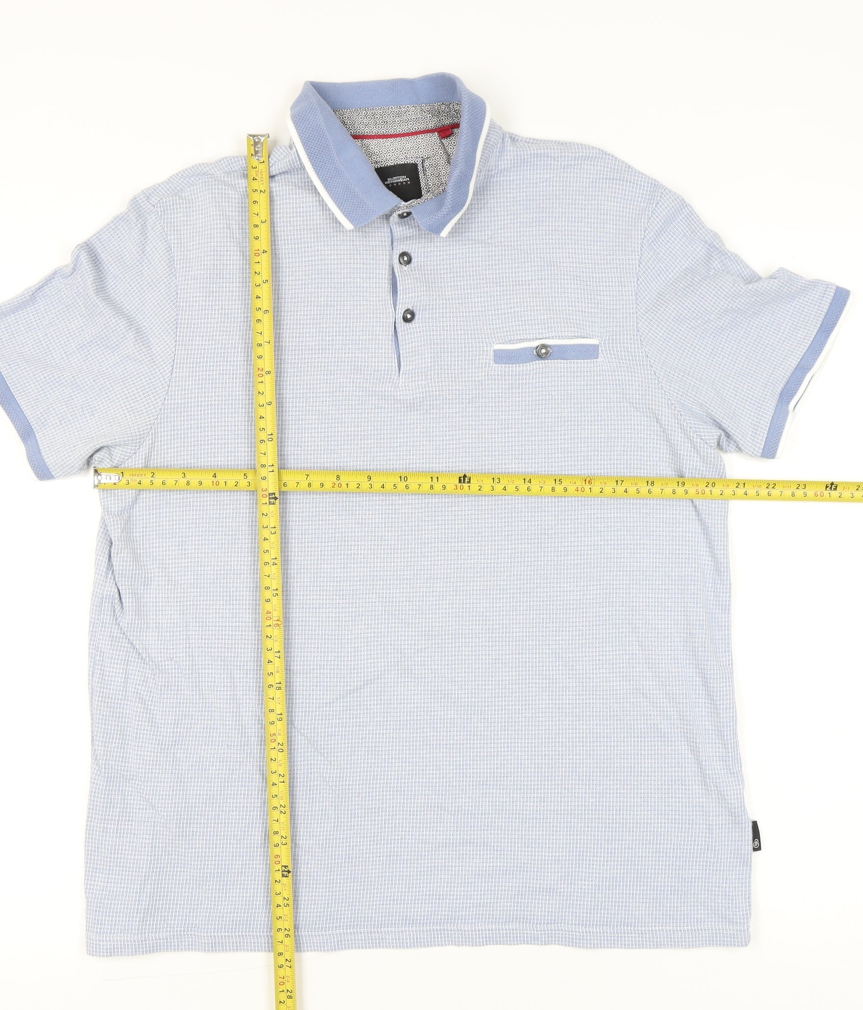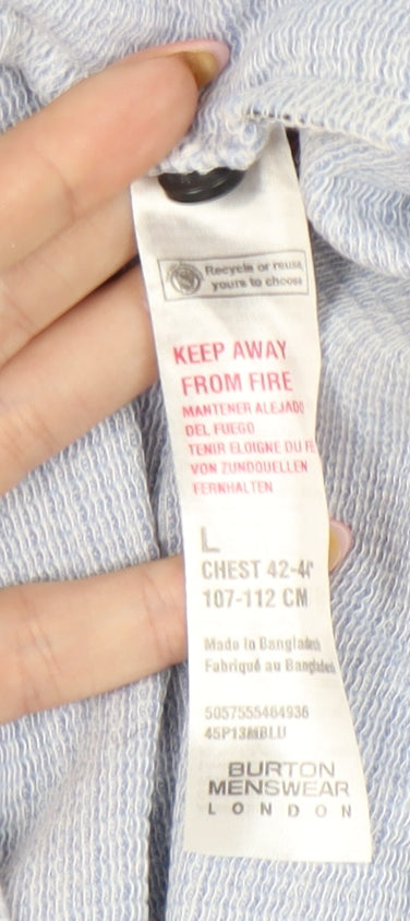 Burton Menswear London Men's Blue Check Polo Shirt L Short Sleeve Cotton