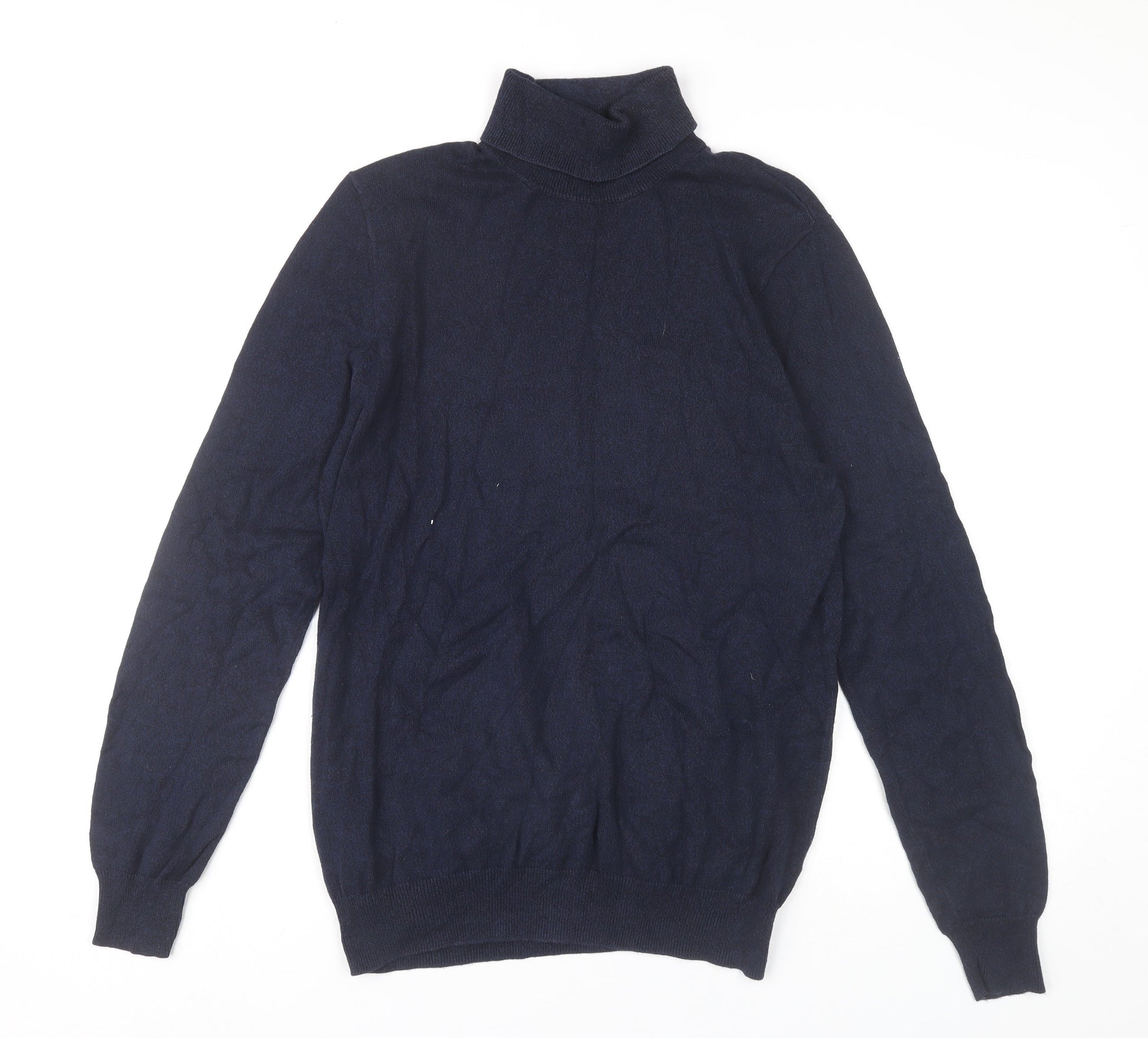 Burton Menswear Men’s Blue Roll Neck Jumper Medium Cotton Knit