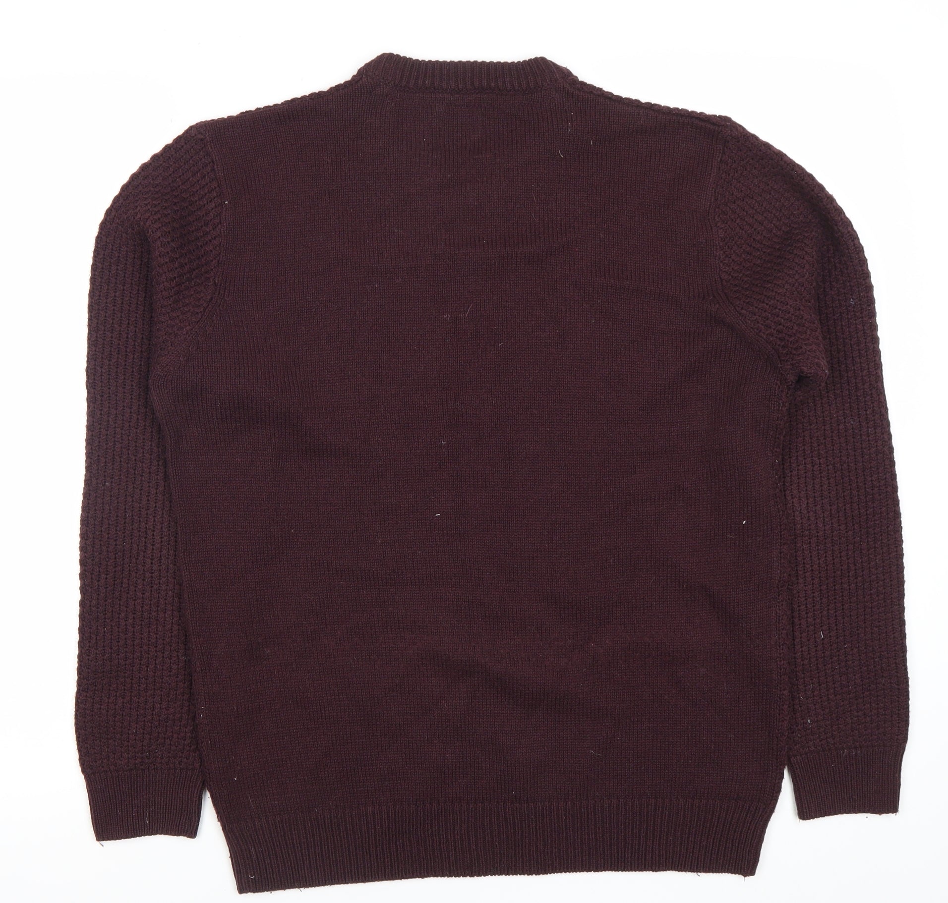 Burton Menswear Men’s Purple M Chunky Knit Crew Neck Jumper