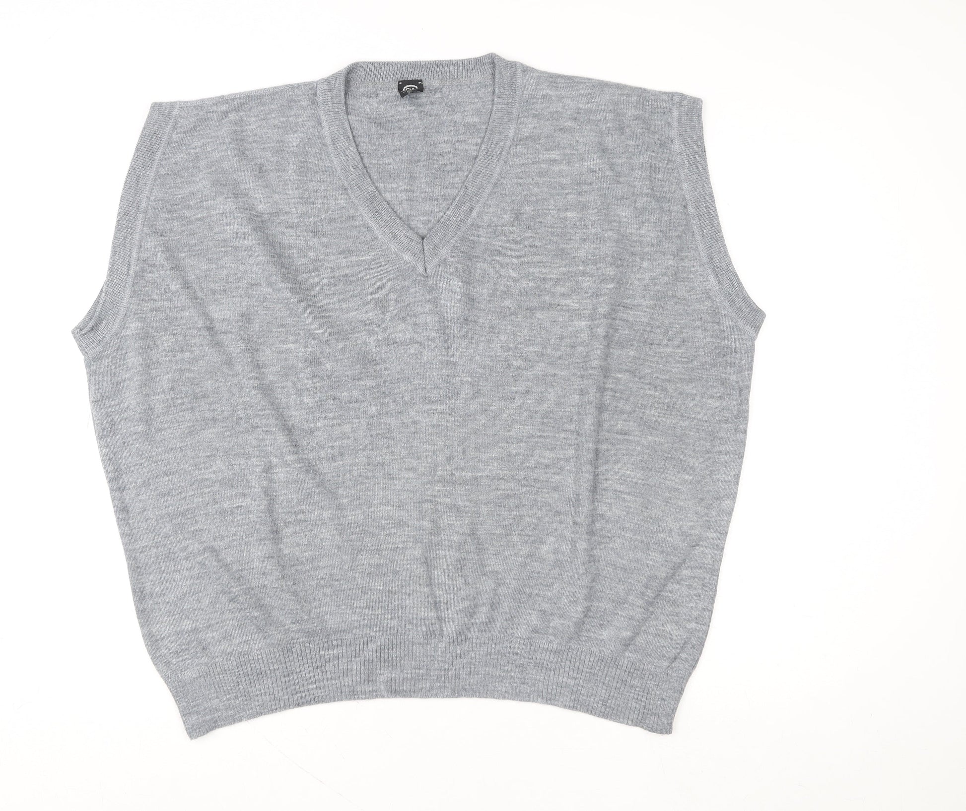 C&A Men Grey Wool Blend V-Neck Sleeveless Knit Jumper Vest XL
