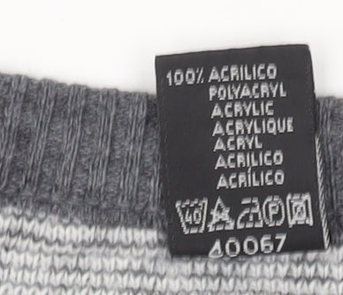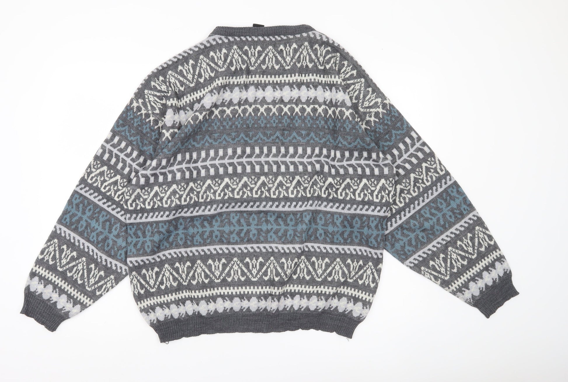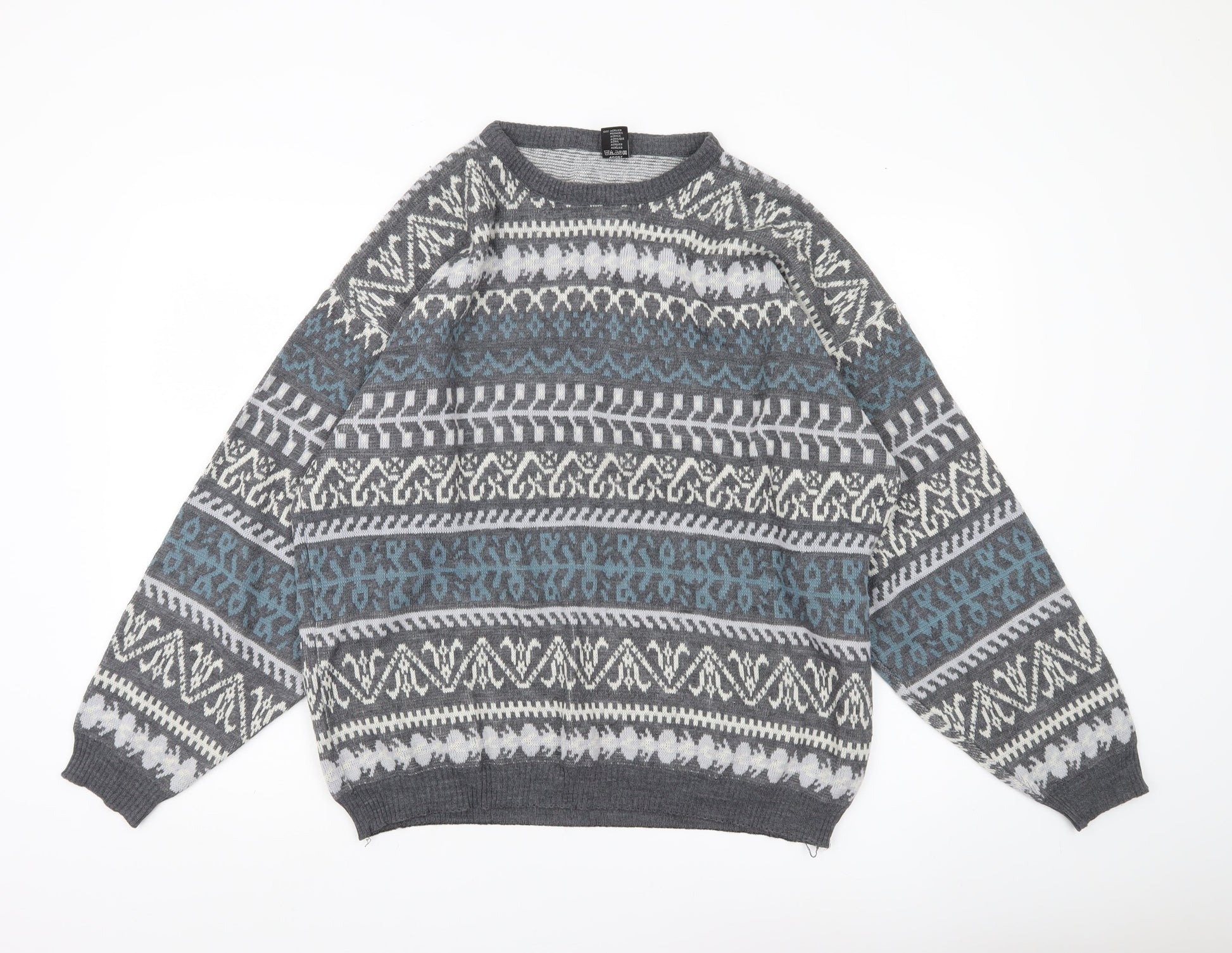 C&A Men’s Grey Fair Isle Acrylic Knit Jumper Size L Crew Neck