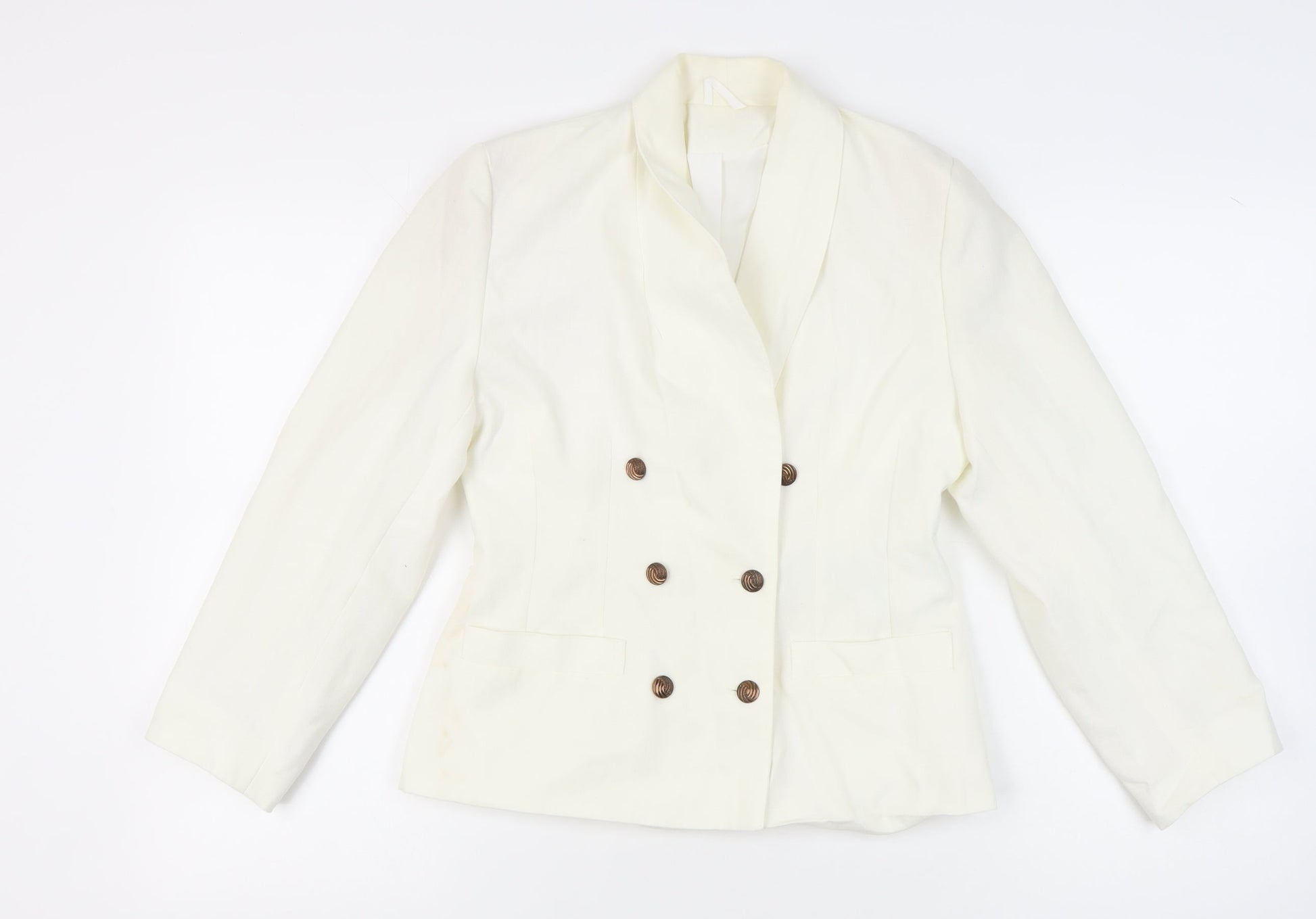 C&A Women Ivory Double-Breasted Suit Jacket Size 10 Petite