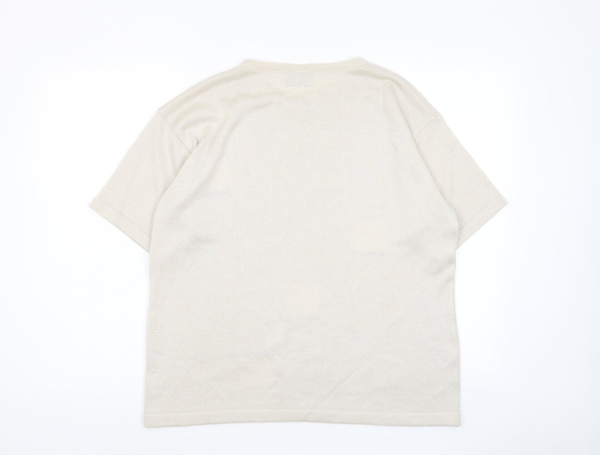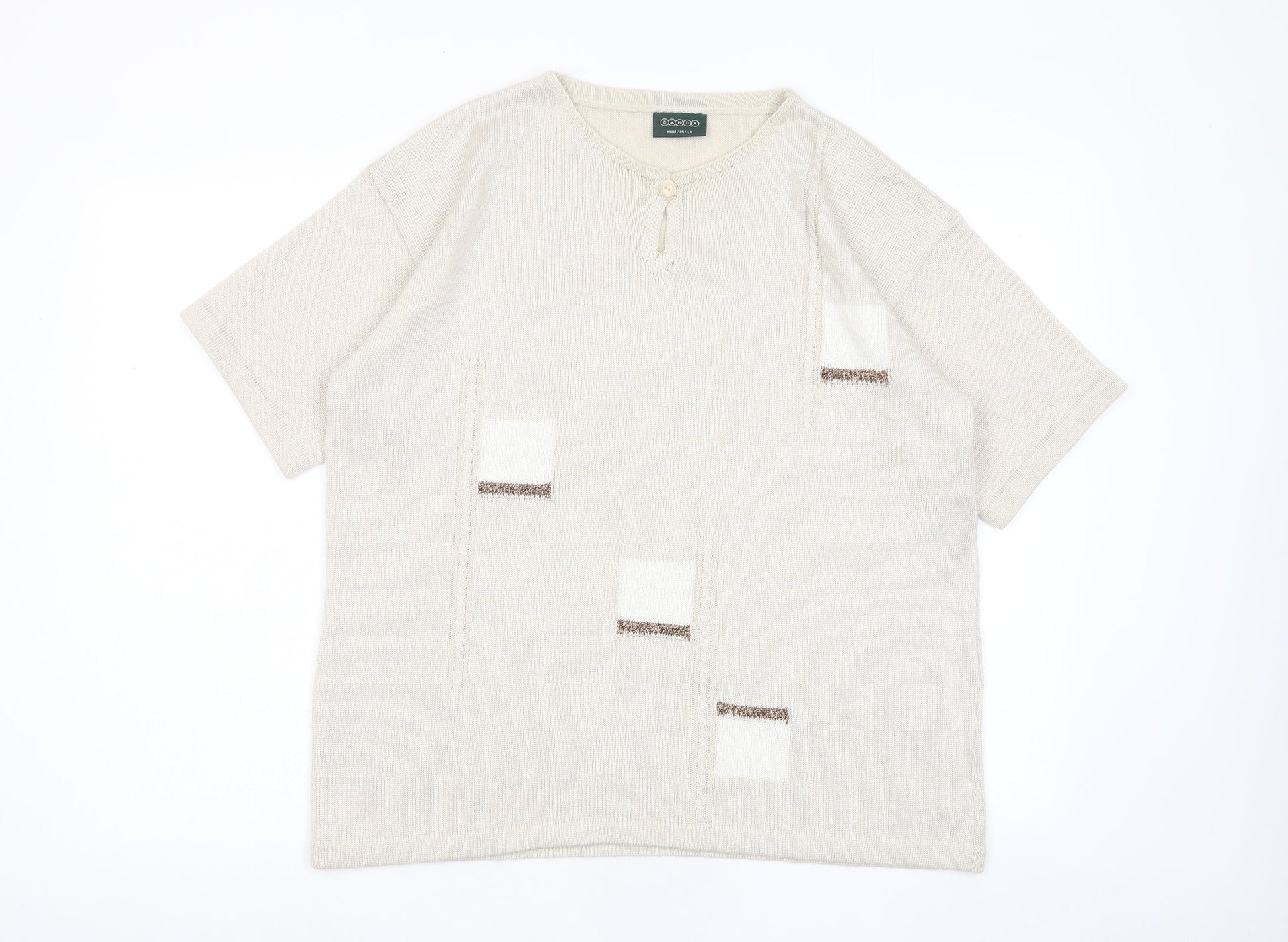 C&A Womens Beige Crew Neck Acrylic Pullover Jumper Size L - Keyhole neck