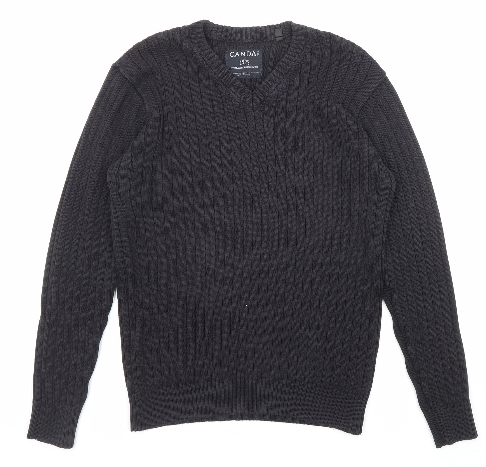C&A Womens Black V-Neck Acrylic Pullover Jumper Size M
