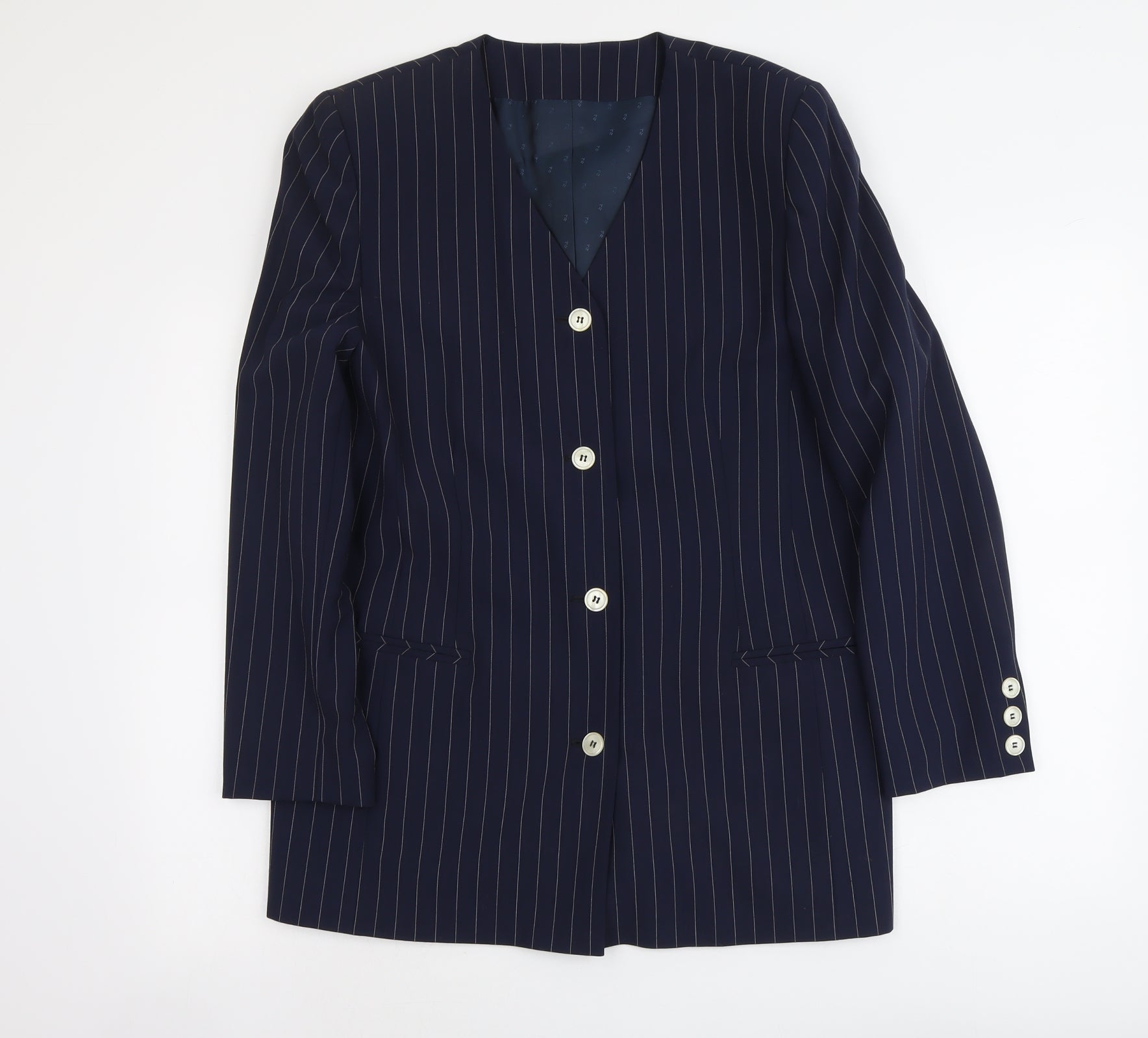 C&A Womens Blue Striped Polyester Jacket Suit Jacket Size 14