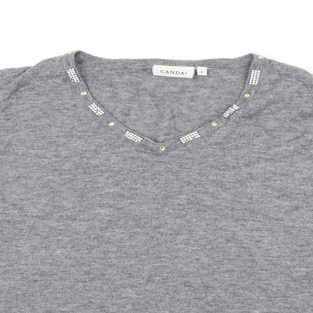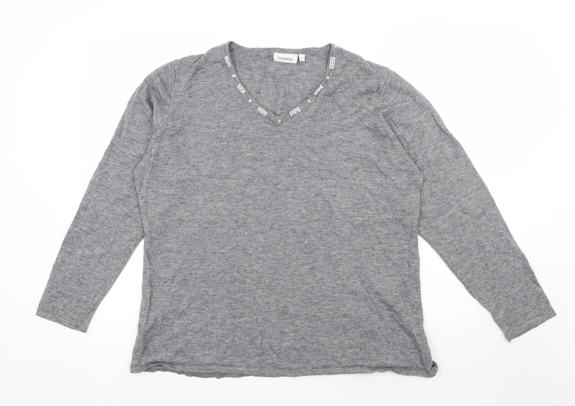 C&A Womens Grey V-Neck Acrylic Pullover Jumper Size XL