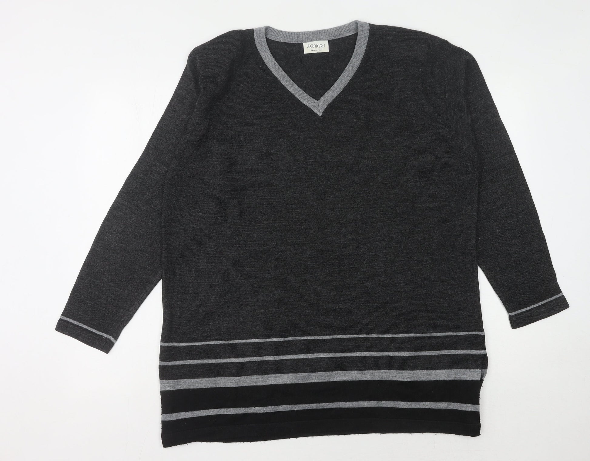 C&A Women's Grey V-Neck Pullover Jumper Size 14