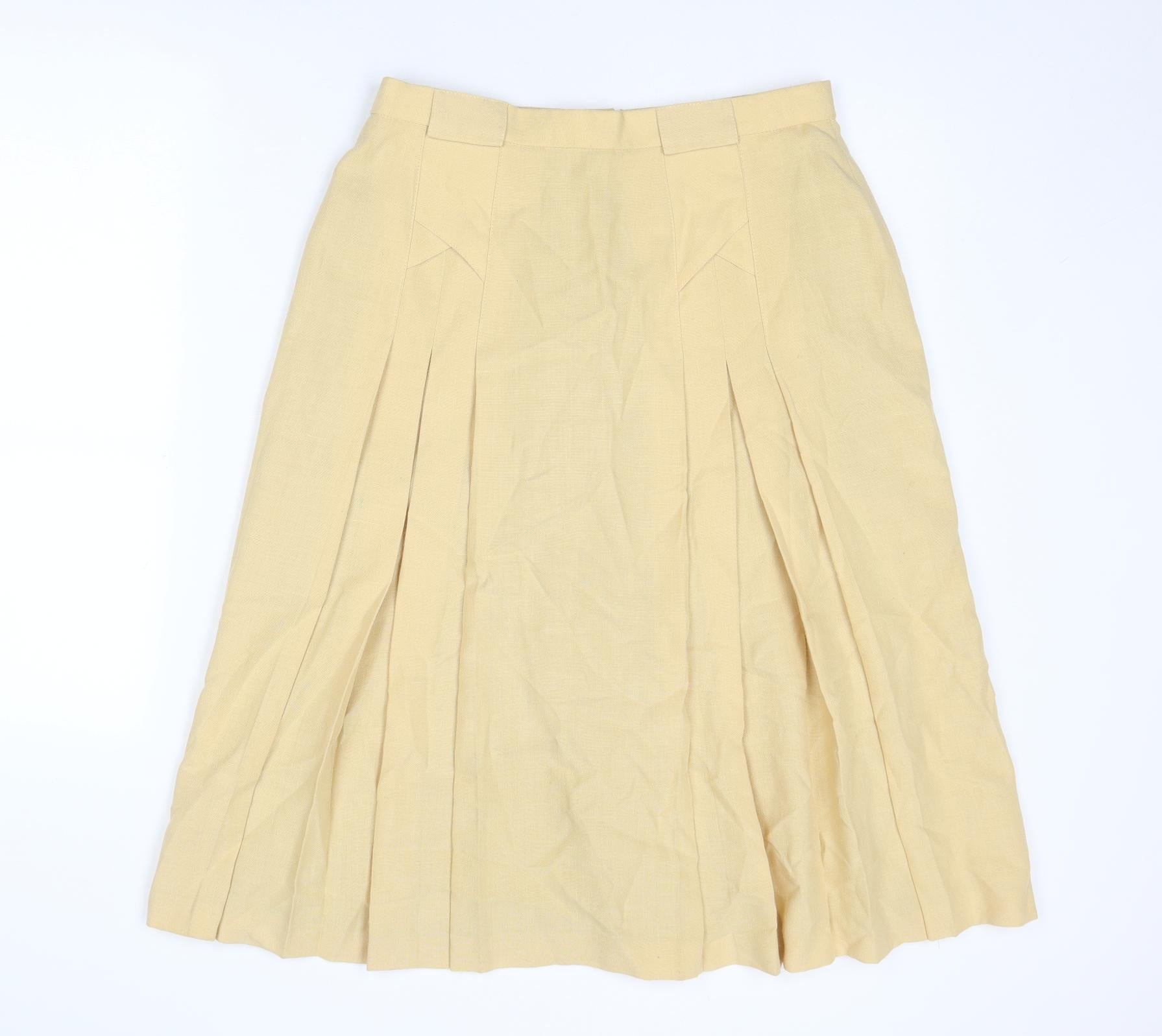 C&A Womens Yellow Polyester Pleated Skirt Size 16 Zip
