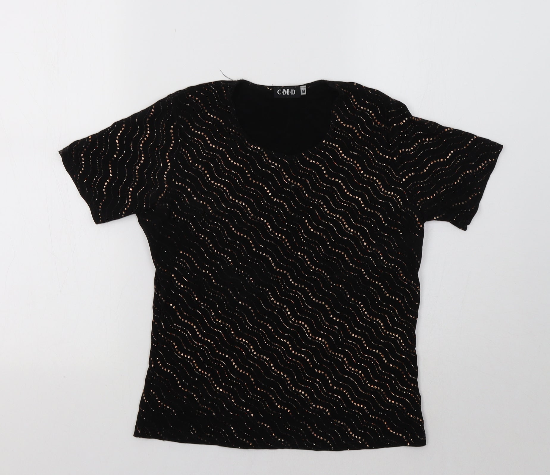 C.M.D Womens Black Geometric Basic Blouse Size M