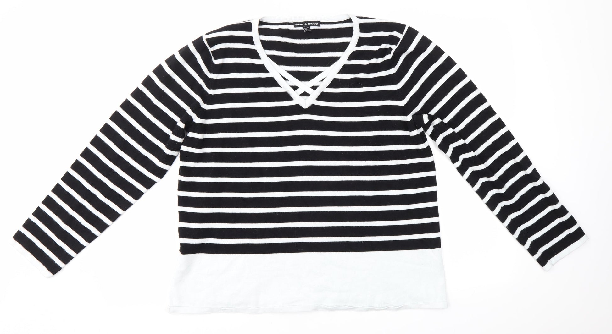 Cable & Gauge Womens Multicoloured Round Neck Striped Viscose Pullover Jumper Size XL