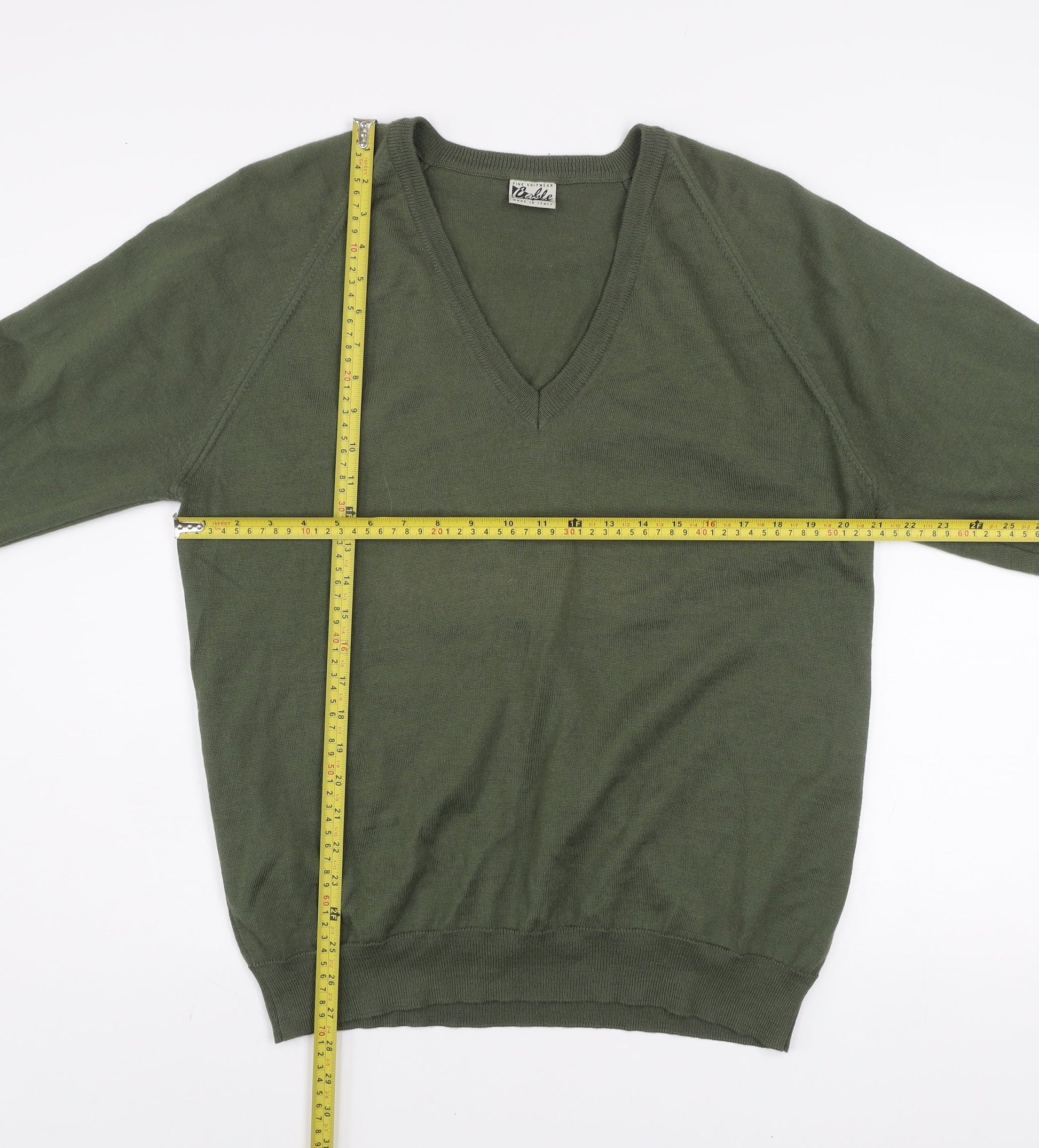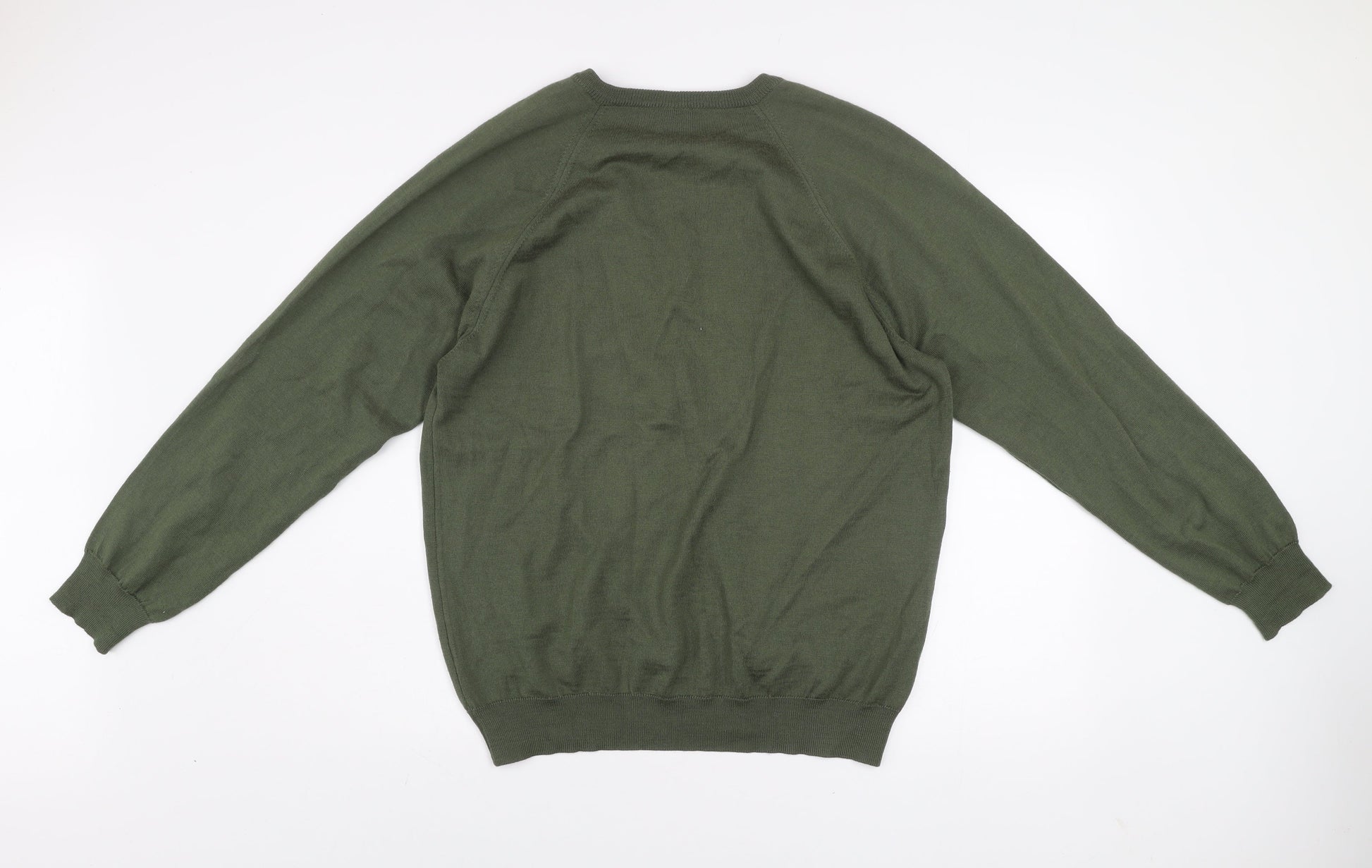 Cable Men’s Green Wool Blend V-Neck Fine Knit Jumper Size L