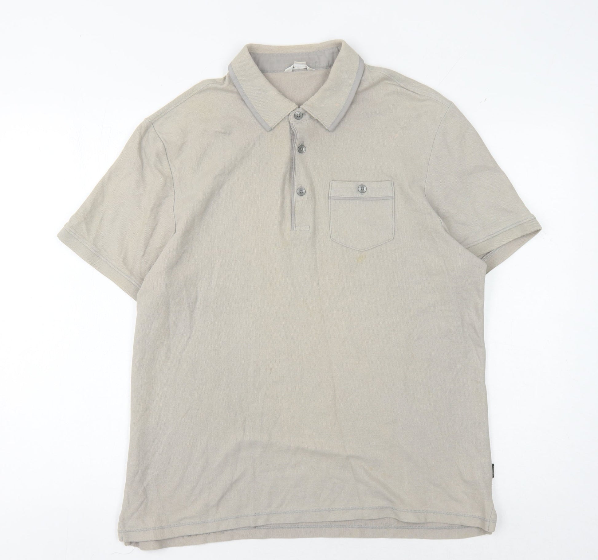 Calvin Klein Men's Beige Polo Shirt L, Casual Button-Down