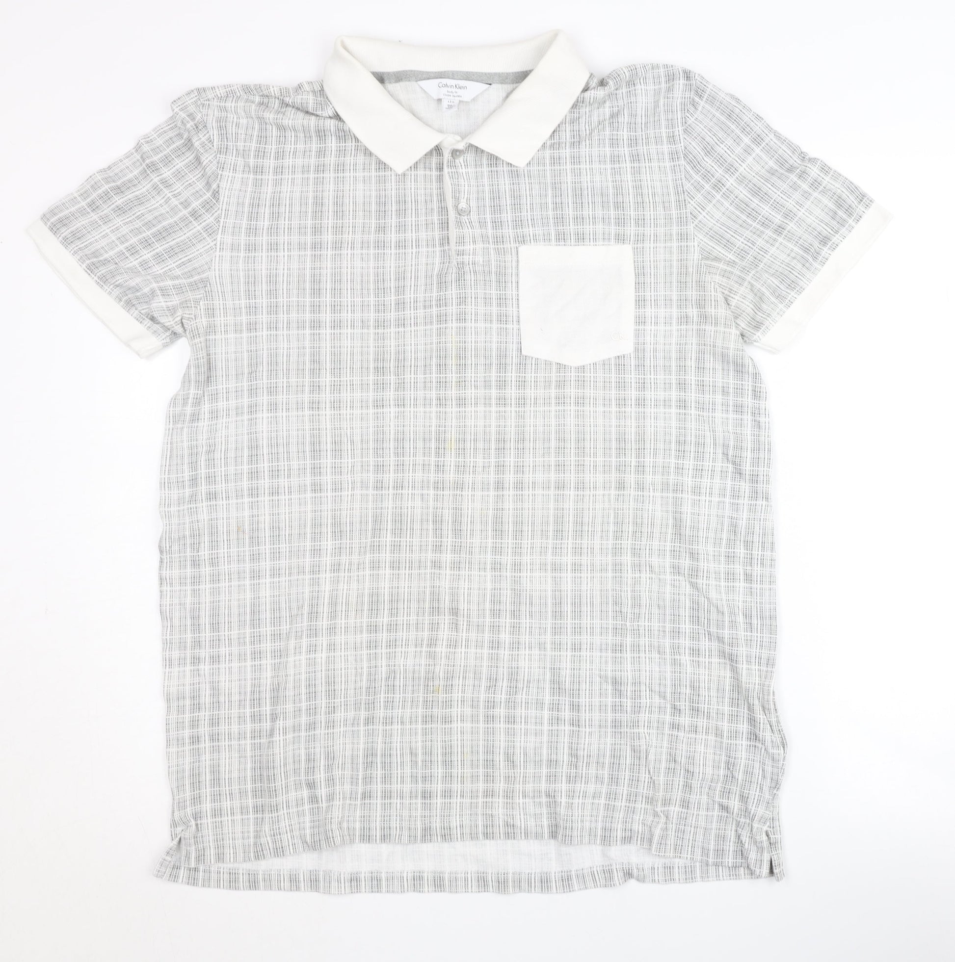 Calvin Klein Mens Grey Check Polo L Collared Top