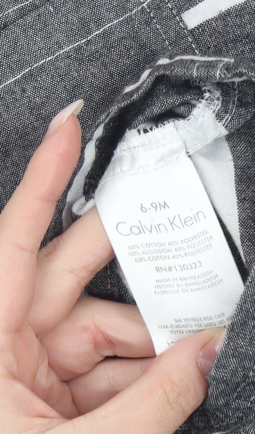 Calvin Klein Unisex Baby Grey Striped Dungaree 6-9 Months Cotton Blend