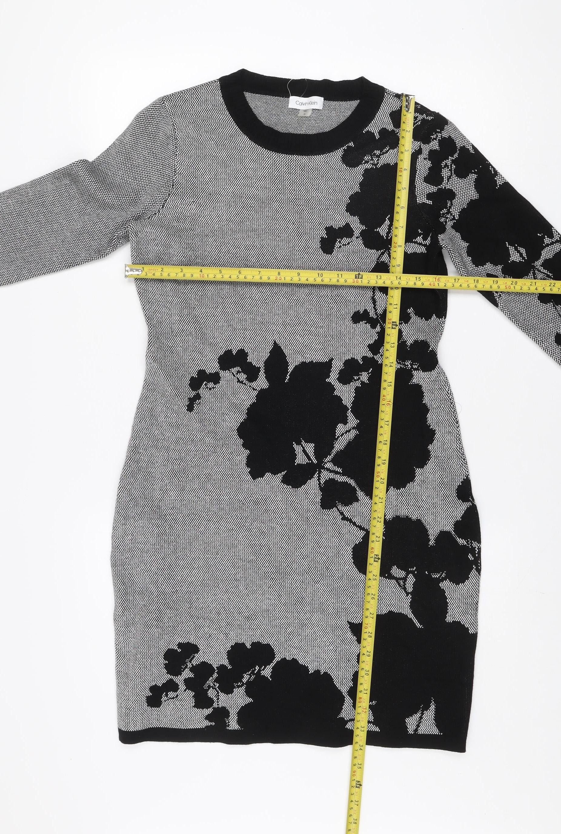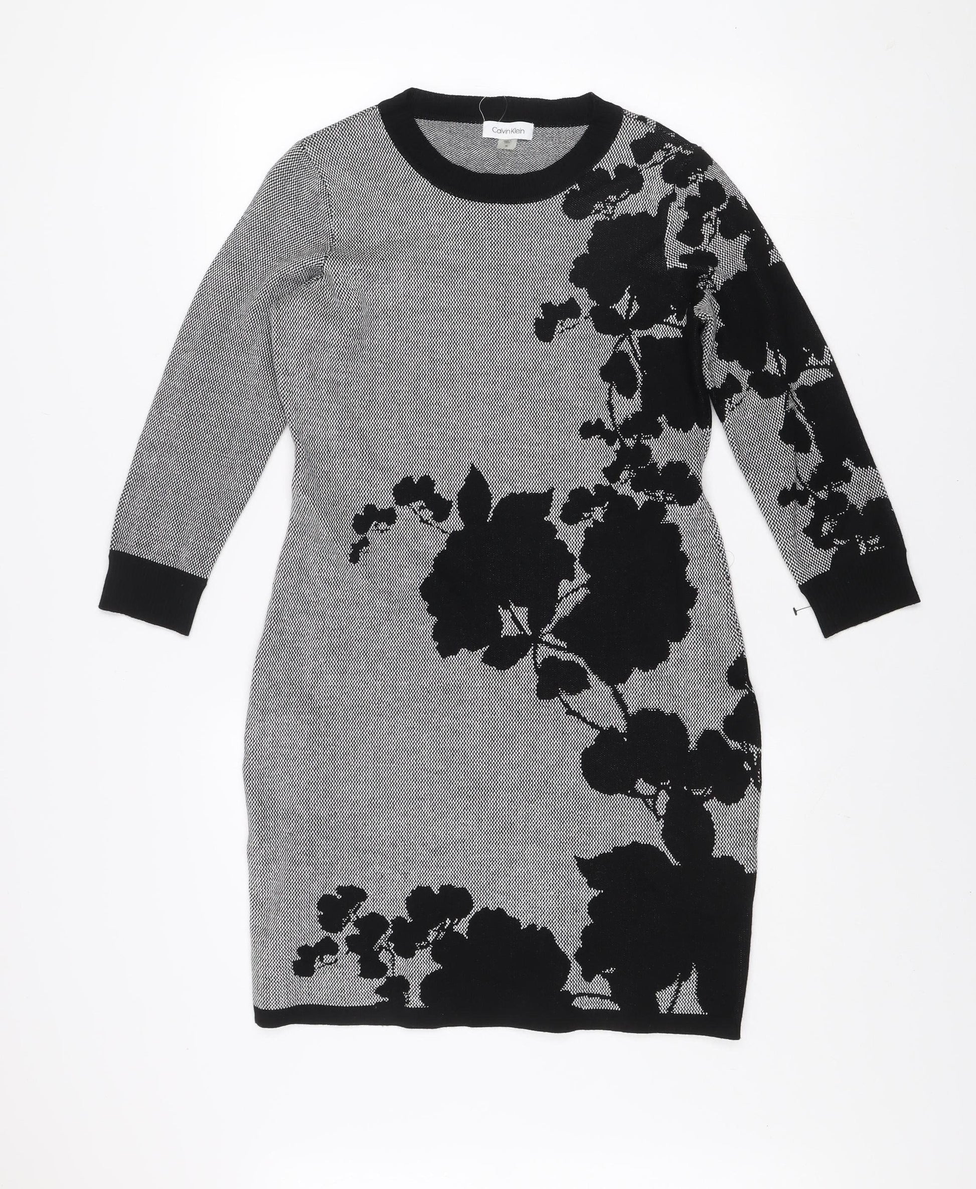 Calvin Klein Women’s Grey Floral Knit Bodycon Dress Size M
