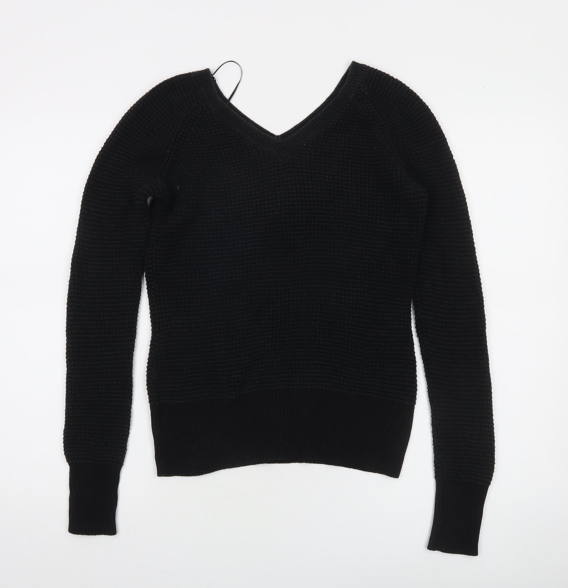 Calvin Klein Women's Black V-Neck Waffle Knit Jumper Size S